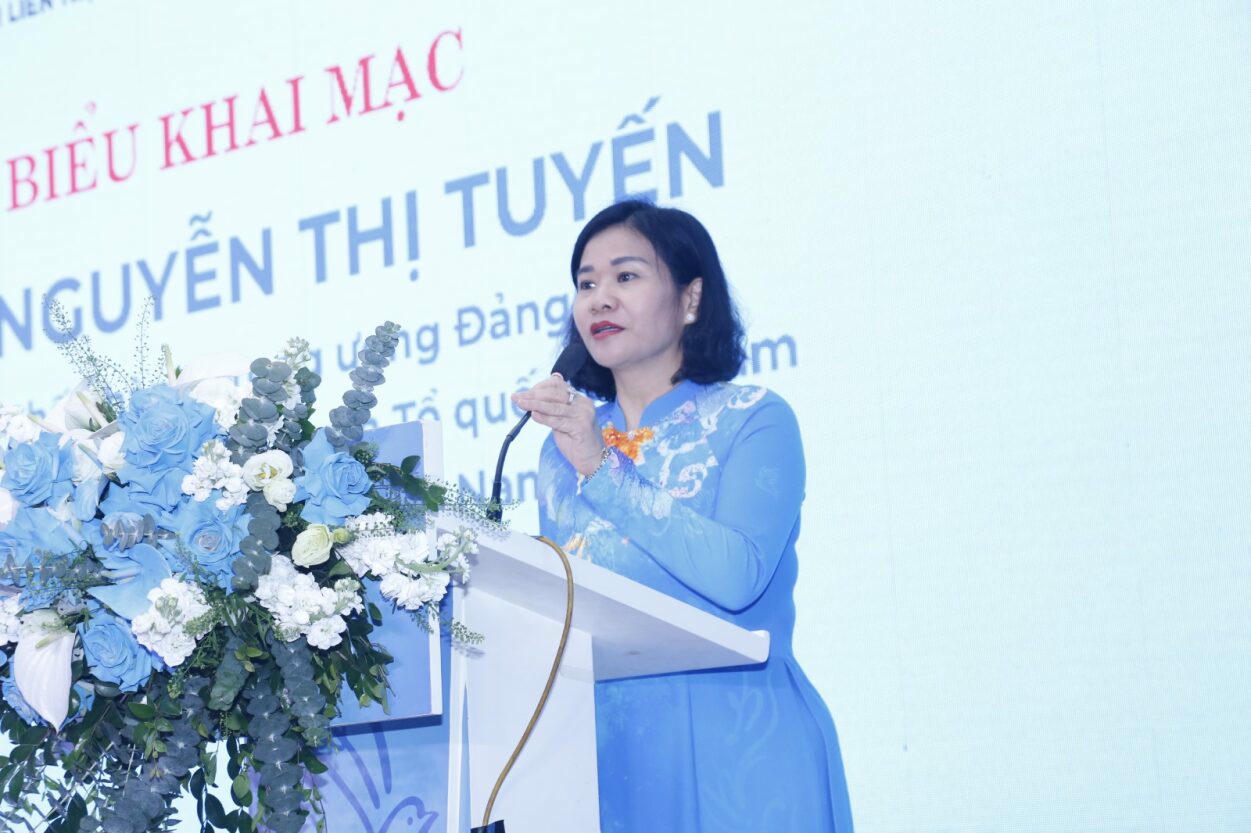 Phát biểu khai mạc, Phó Chủ tịch UBTƯ MTTQ Việt Nam, Chủ tịch Hội Liên hiệp Phụ nữ Việt Nam Nguyễn Thị Tuyến nêu rõ: Hội nghị không chỉ dịp cùng nhìn lại chặng đường 15 năm kiên trì, bền bỉ triển khai Cuộc vận động lớn gắn bó mật thiết với đời sống phụ nữ, nhân dân cả nước mà còn là sơ kết giai đoạn 2 Đề án 938 "Tuyên truyền, giáo dục, vận động, hỗ trợ phụ nữ tham gia giải quyết một số vấn đề xã hội liên quan đến phụ nữ giai đoạn 2017-2027" và Chương trình "Mẹ đỡ đầu" - những nhiệm vụ giàu tính nhân văn, khẳng định vai trò, trách nhiệm và tấm lòng yêu thương, sẻ chia của phụ nữ Việt Nam.