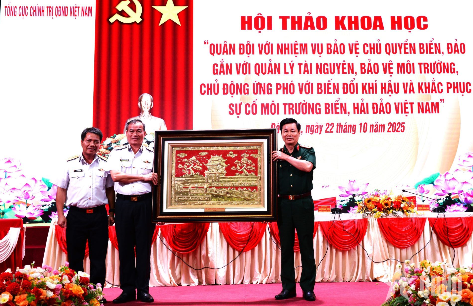 Trước khi diễn ra hội thảo, Trung tướng Đỗ Xuân Tụng và lãnh đạo, chỉ huy các cơ quan, đơn vị trong và ngoài Quân đội đã tổ chức Lễ dâng hương tưởng niệm Chủ tịch Hồ Chí Minh tại Bộ tư lệnh Vùng 3 Hải quân.