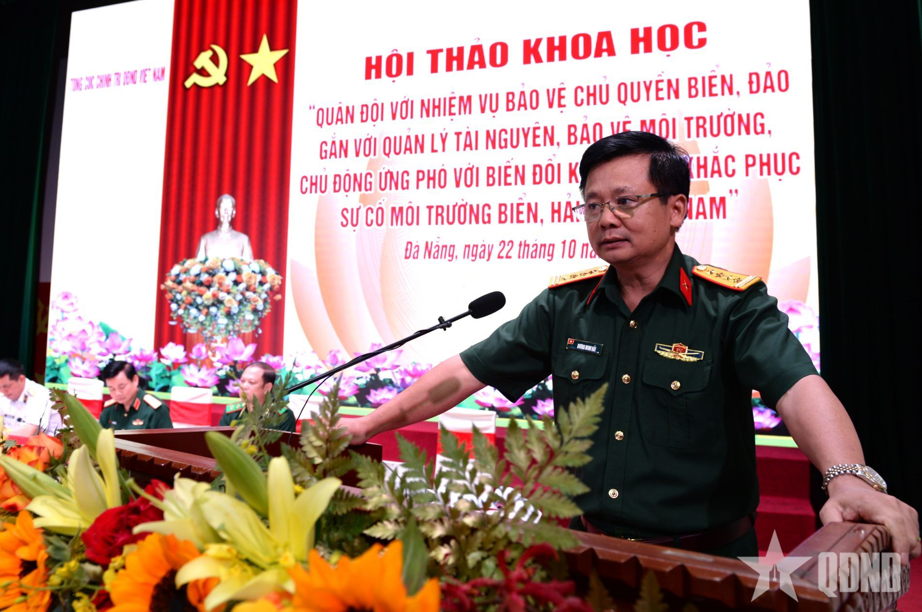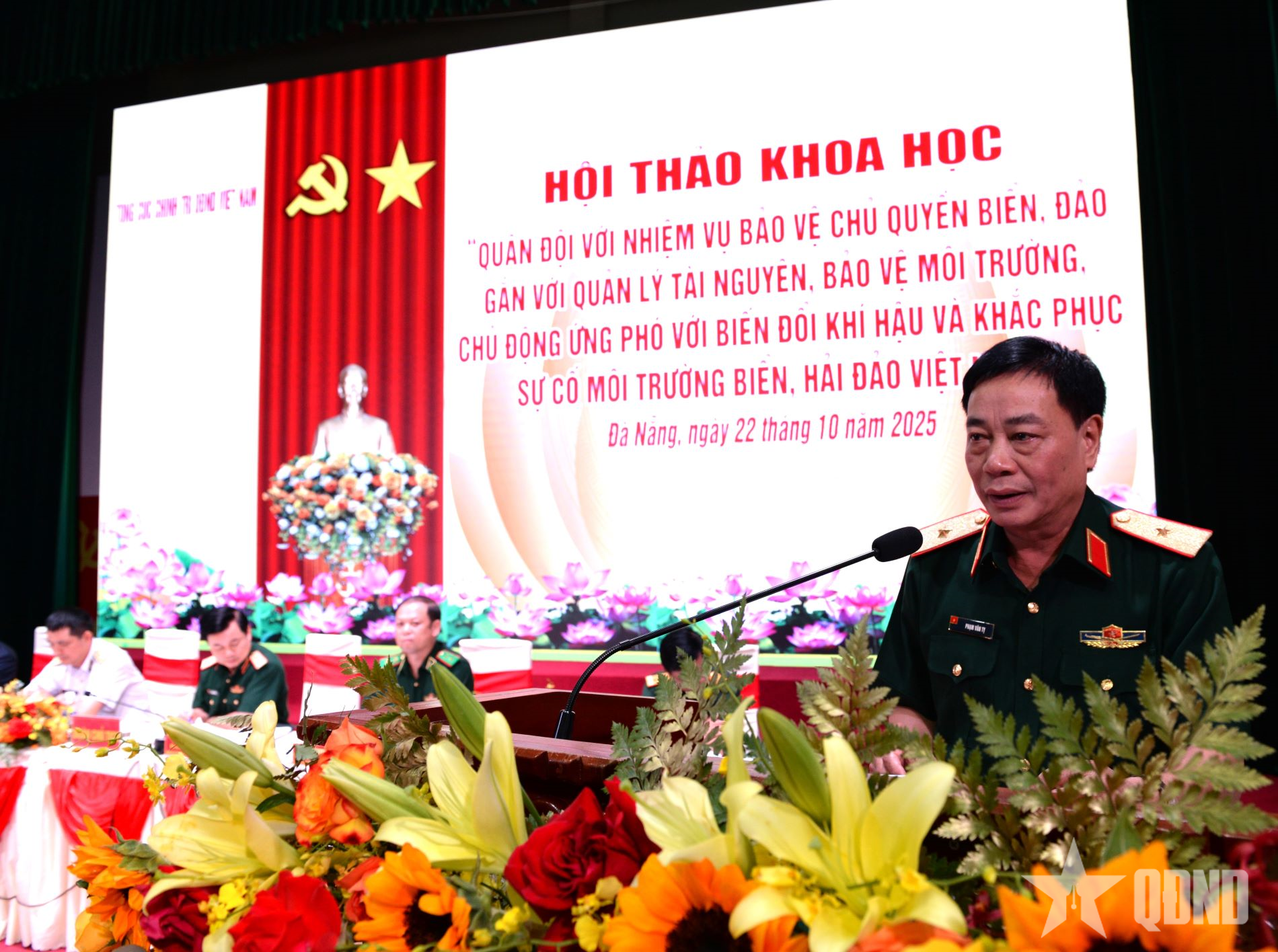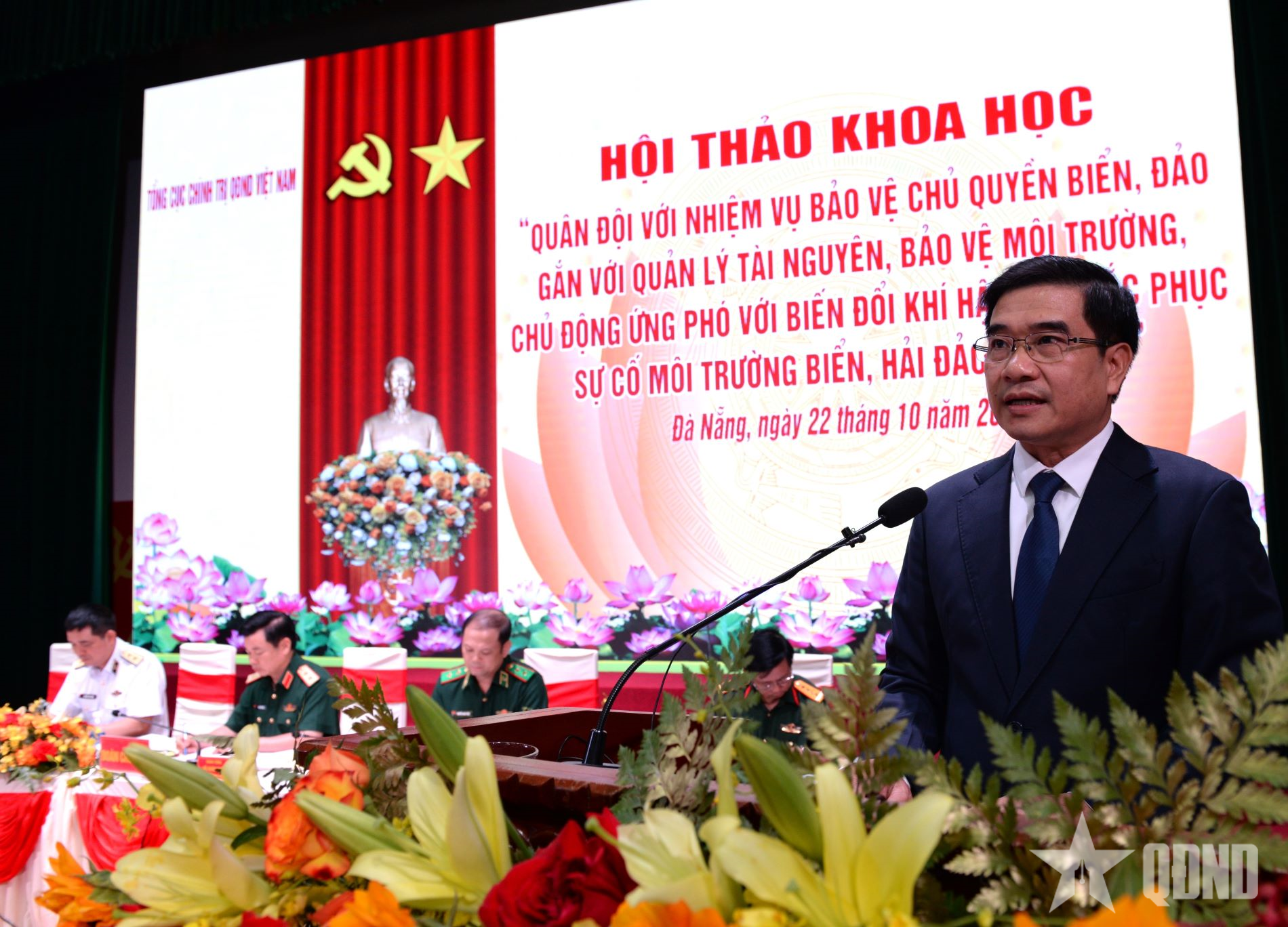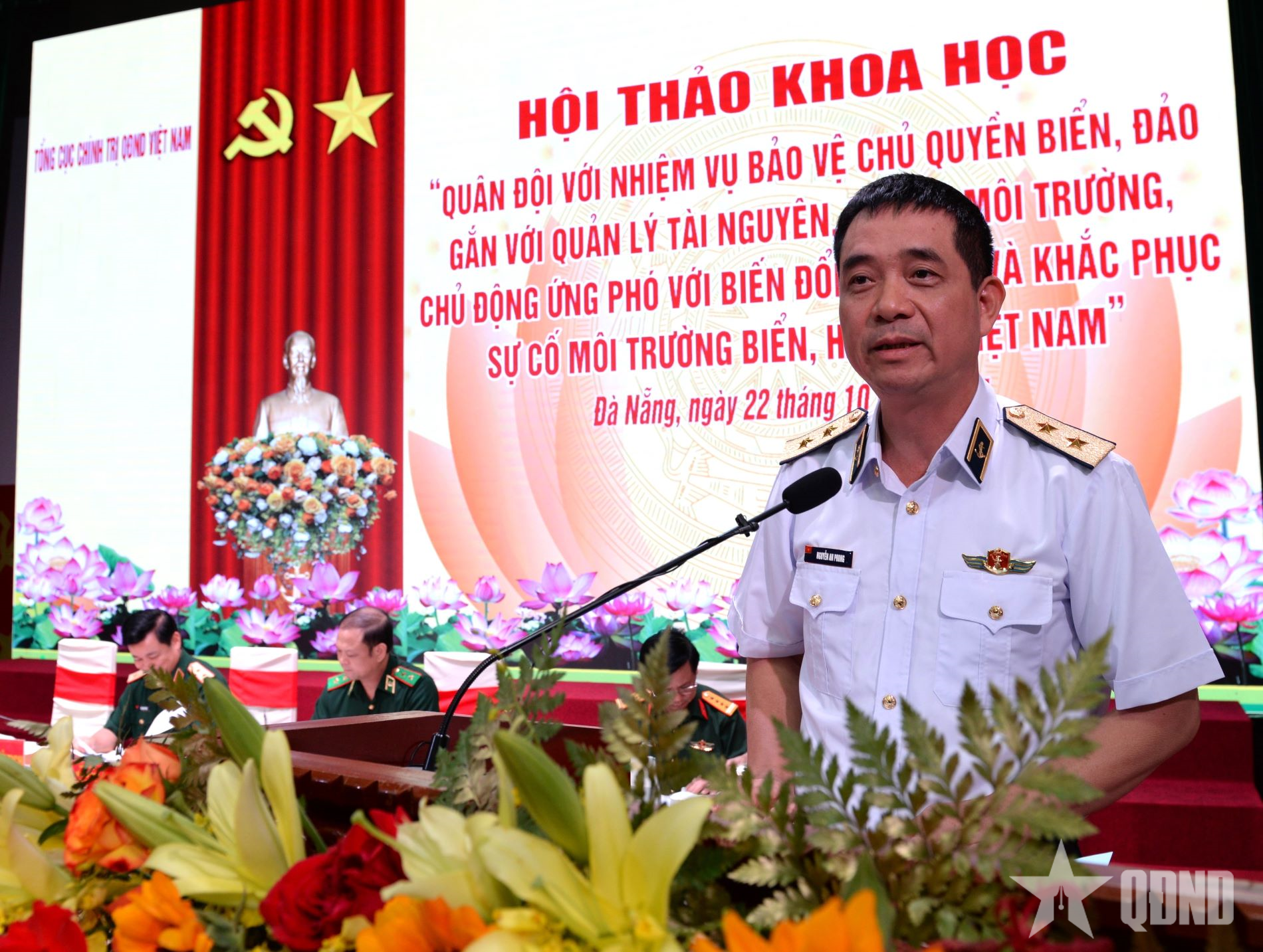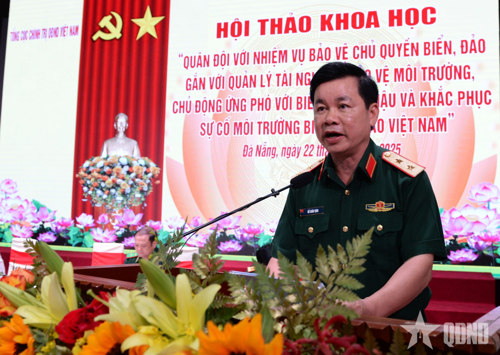 Phát biểu khai mạc hội thảo, Trung tướng Đỗ Xuân Tụng khẳng định: Trong sự nghiệp xây dựng và bảo vệ Tổ quốc, QĐND Việt Nam luôn giữ vai trò nòng cốt, là lực lượng chính trị, lực lượng chiến đấu tuyệt đối trung thành, tin cậy của Đảng, Nhà nước và nhân dân, trực tiếp thực hiện nhiệm vụ bảo vệ vững chắc độc lập, chủ quyền, thống nhất, toàn vẹn lãnh thổ của Tổ quốc, trong đó có chủ quyền biển, đảo thiêng liêng. Trong bất luận điều kiện, hoàn cảnh nào, Quân đội ta không chỉ là lực lượng bảo vệ chủ quyền bằng sức mạnh quốc phòng, mà còn là lực lượng tiên phong trong bảo vệ môi trường, gìn giữ hệ sinh thái, quản lý tài nguyên và ứng phó với biến đổi khí hậu.
