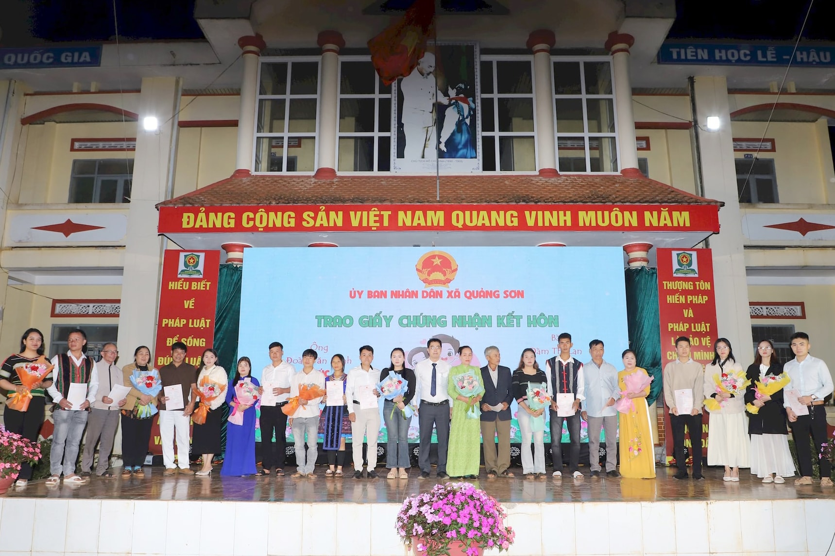 Ban tổ chức đã trao Giấy chứng nhận đăng ký kết hôn cho 12 cặp vợ chồng trên địa bàn xã Quảng Sơn