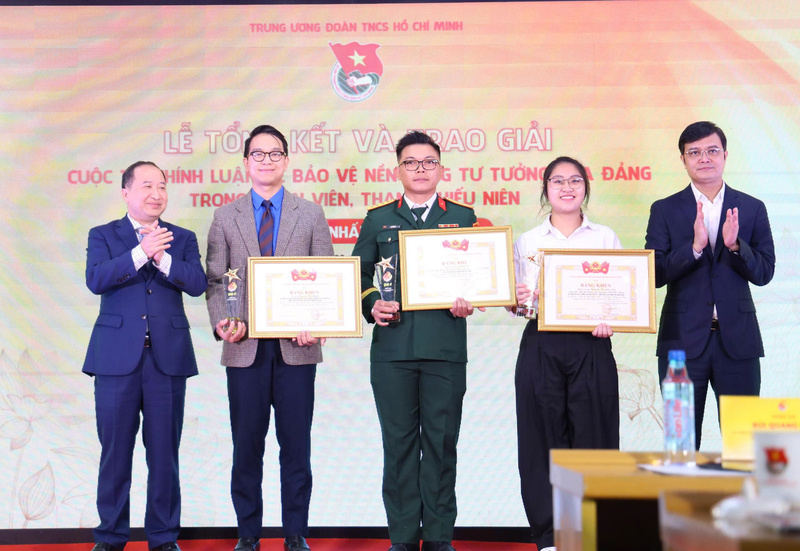 Tại buổi lễ, Ban Tổ chức đã vinh danh 37 tác giả và nhóm tác giả đạt giải Cuộc thi Chính luận bảo vệ nền tảng tư tưởng của Đảng trong đoàn viên, thanh thiếu niên lần thứ Nhất, năm 2025; trao thưởng cho 2 tập thể có số lượng bài dự thi nhiều nhất, 1 tập thể có tỷ lệ đoàn viên tham gia cao nhất, cùng 3 cá nhân có thành tích xuất sắc trong công tác tham mưu tổ chức Cuộc thi.