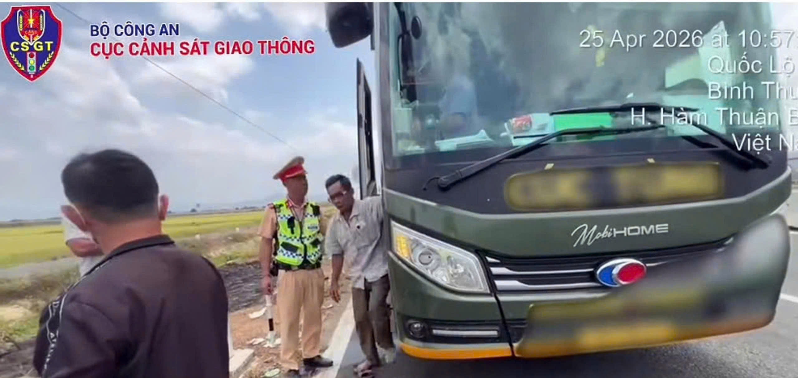 Theo đó, ngày 25-4, Đội CSGT đường bộ cao tốc số 6 tiến hành dừng, kiểm tra xe khách biển số 76B-013... trên cao tốc Vĩnh Hảo – Phan Thiết đoạn qua xã Hàm Thuận Bắc, Lâm Đồng.