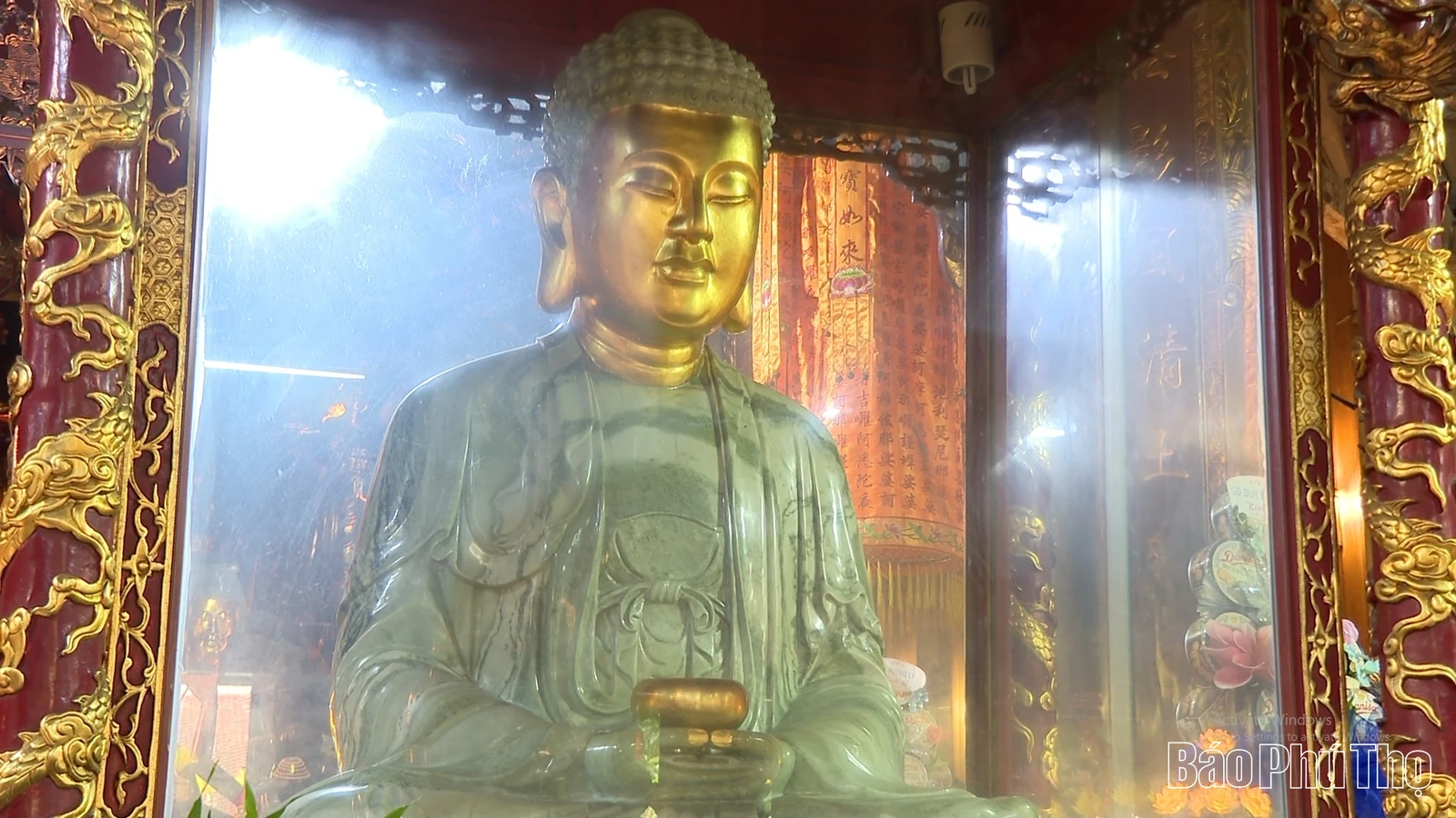 Phật ngọc kết già thiền định, thân ngọc xanh mát, tạo nên vẻ uy nghi và thanh tịnh giữa lòng Thổ Tang.