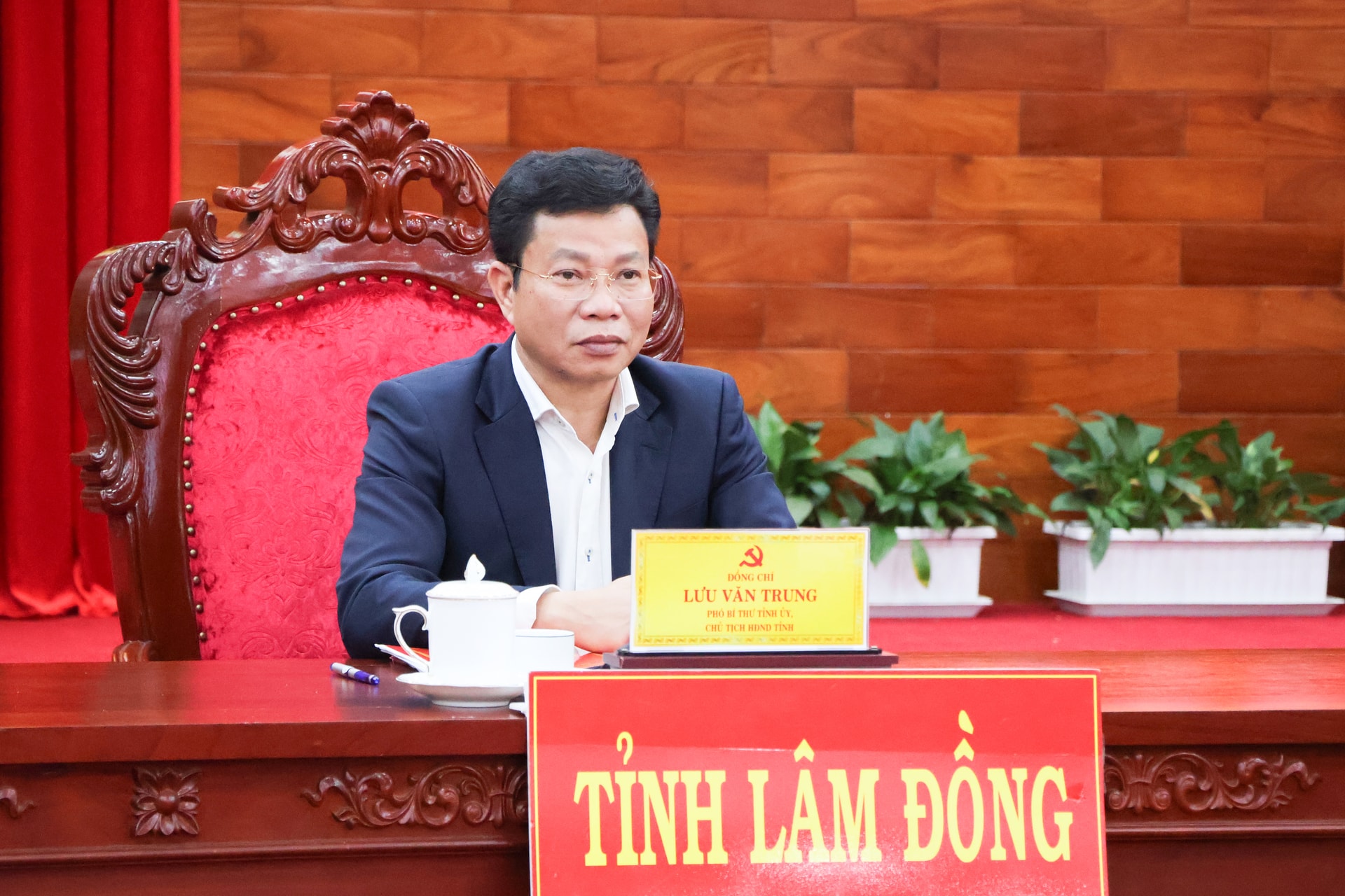 Phó Bí thư Tỉnh ủy, Chủ tịch HĐND tỉnh Lưu Văn Trung, cùng lãnh đạo UBND tỉnh và đại diện các sở, ngành tham dự tại điểm cầu Lâm Đồng
