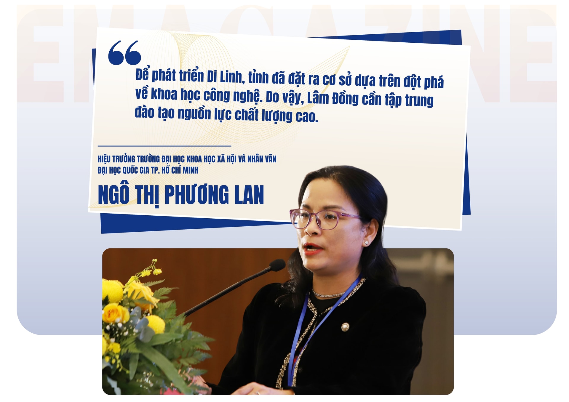 Theo GS.TS Ngô Thị Phương Lan, Hiệu trưởng Trường Đại học Khoa học Xã hội và Nhân văn (Đại học Quốc gia TP. Hồ Chí Minh), để phát triển Di Linh, tỉnh đã đặt ra cơ sở dựa trên đột phá về khoa học công nghệ. Tuy nhiên, nơi để tạo ra những tri thức mới đó là chính là các trường đại học. Do vậy, Lâm Đồng cần tập trung đào tạo nguồn lực chất lượng cao.