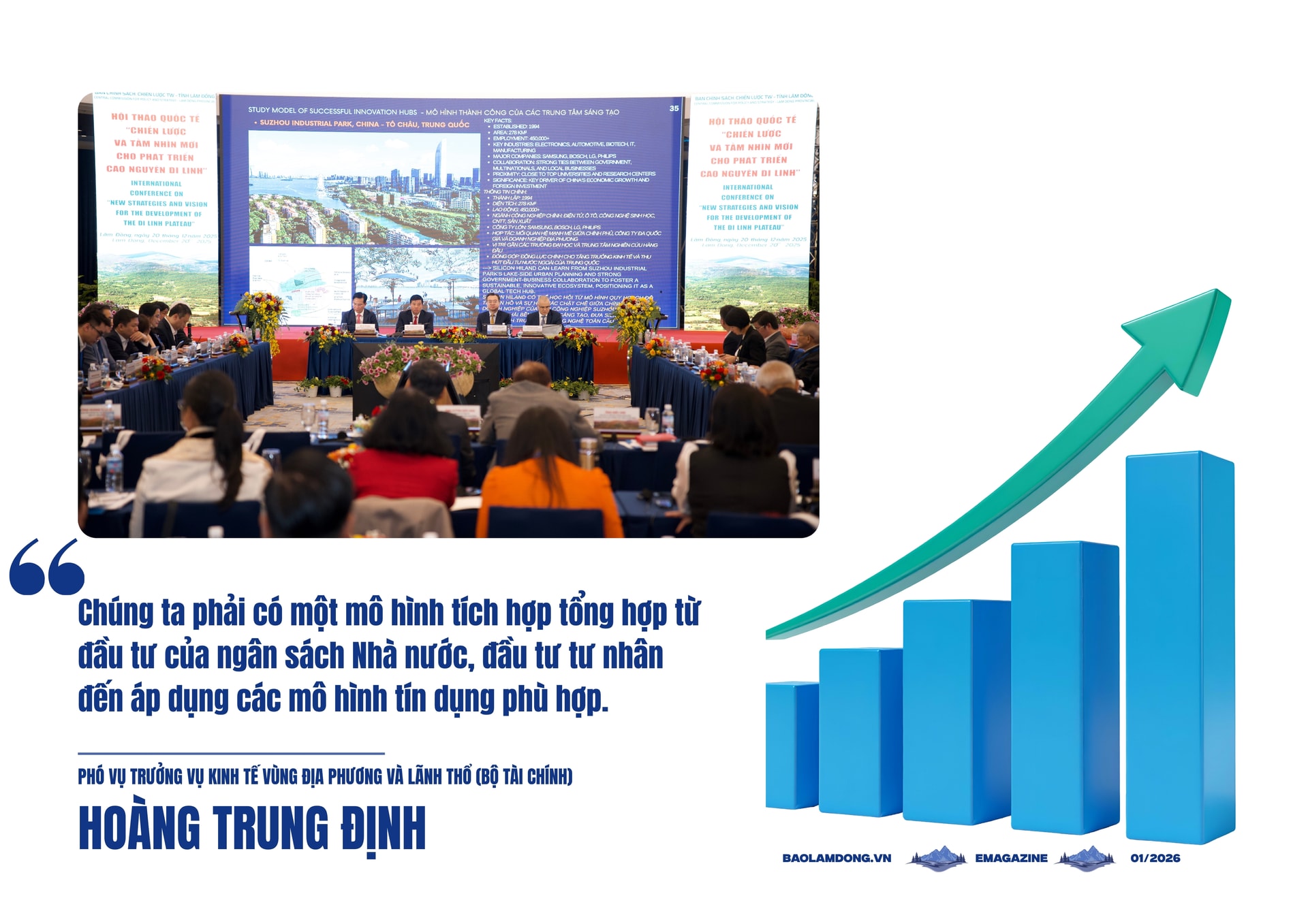 “Chúng ta phải có một mô hình tích hợp tổng hợp từ đầu tư của ngân sách Nhà nước, đầu tư tư nhân đến áp dụng các mô hình tín dụng phù hợp.Đối với ngân sách Nhà nước sẽ làm những việc mà doanh nghiệp không làm được như: giải phóng mặt bằng, thu hồi đất, tái định cư, nghiên cứu lập quy hoạch, đầu tư hạ tầng, đào tạo nguồn nhân lực… Doanh nghiệp có trách nhiệm đề xuất dự án, bảo đảm đúng năng lực, điều kiện hiện có của mỗi đơn vị. Khi kết hợp được 2 yếu tố này, có thể đạt được mục tiêu đề ra”, ông Định phân tích.