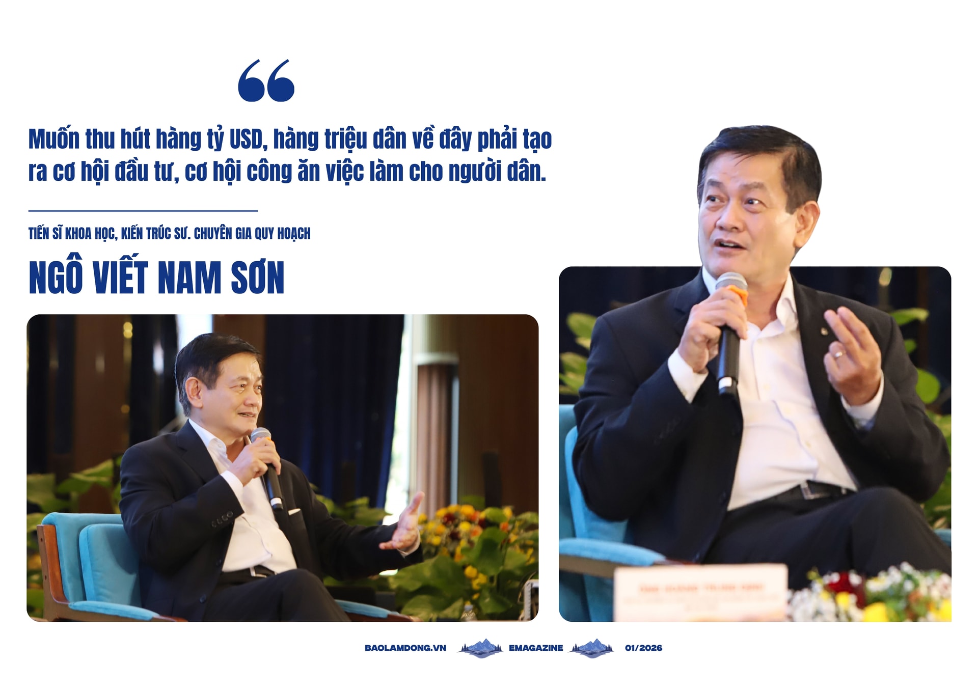 Chuyên gia quy hoạch Ngô Viết Nam Sơn khẳng định: Một tầm nhìn đúng trong quy hoạch sẽ mở đường cho những mô hình sáng tạo, bền vững và thu hút đầu tư chất lượng cao. Cao nguyên Di Linh có vị thế, chiến lược rất đặc biệt, là trung tâm tam giác đều của Lâm Đồng sau sáp nhập. Di Linh có điều kiện về tiềm năng nhưng mật độ dân cư còn thấp. Làm sao để xây dựng Di Linh thành đô thị tầm cỡ, thu hút hàng triệu người dân. Đây vẫn là thử thách lớn và rất cần sự hỗ trợ từ Trung ương cho đến nhất quán từ lãnh đạo tỉnh.