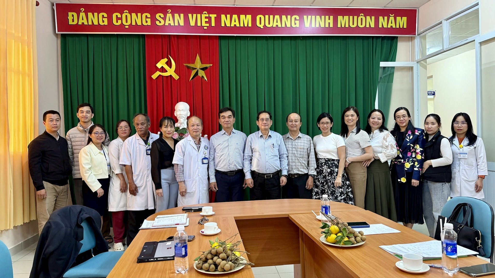 Cán bộ, lãnh đạo Bệnh viện Sản - Nhi tỉnh Lâm Đồng, Sở Y tế tỉnh và đoàn công tác của Bệnh viện Nhi Đồng 2 chụp hình lưu niệm