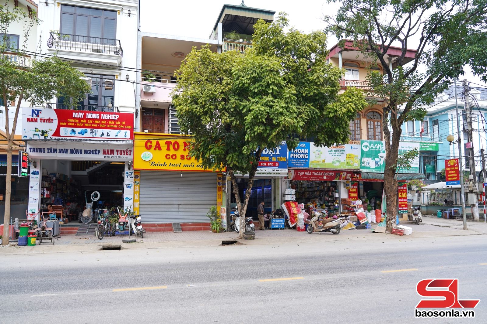 Một dãy phố các cửa hàng kinh doanh tại trung tâm xã Thuận Châu.