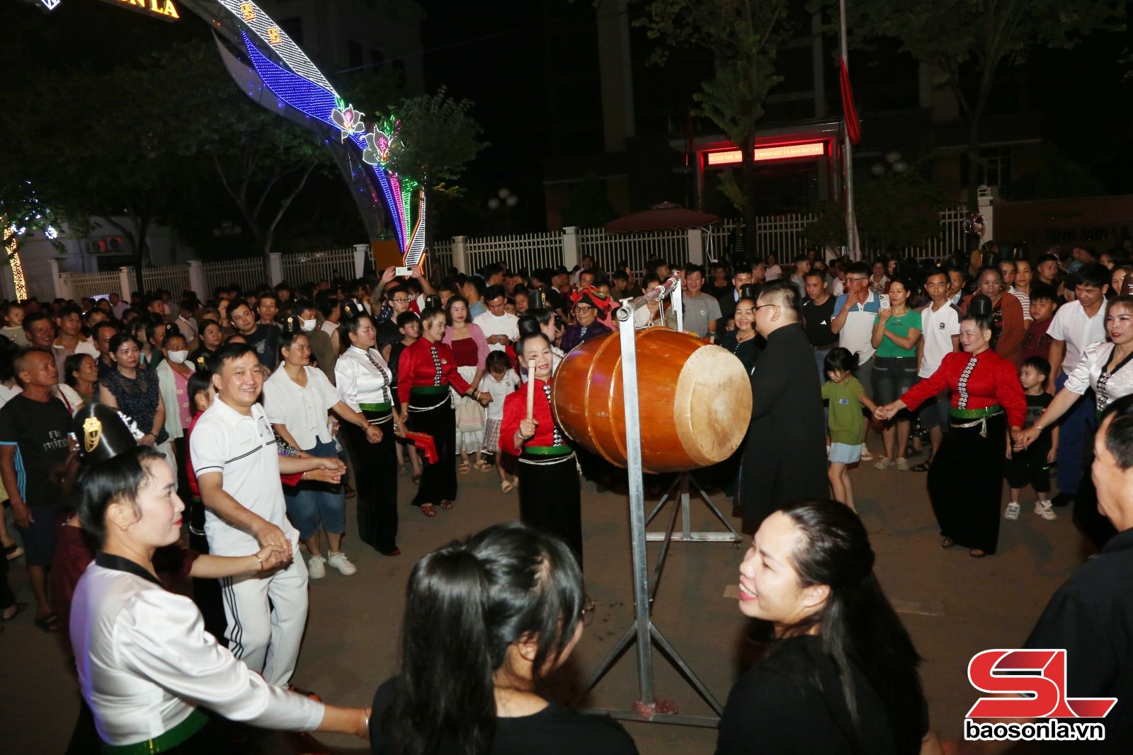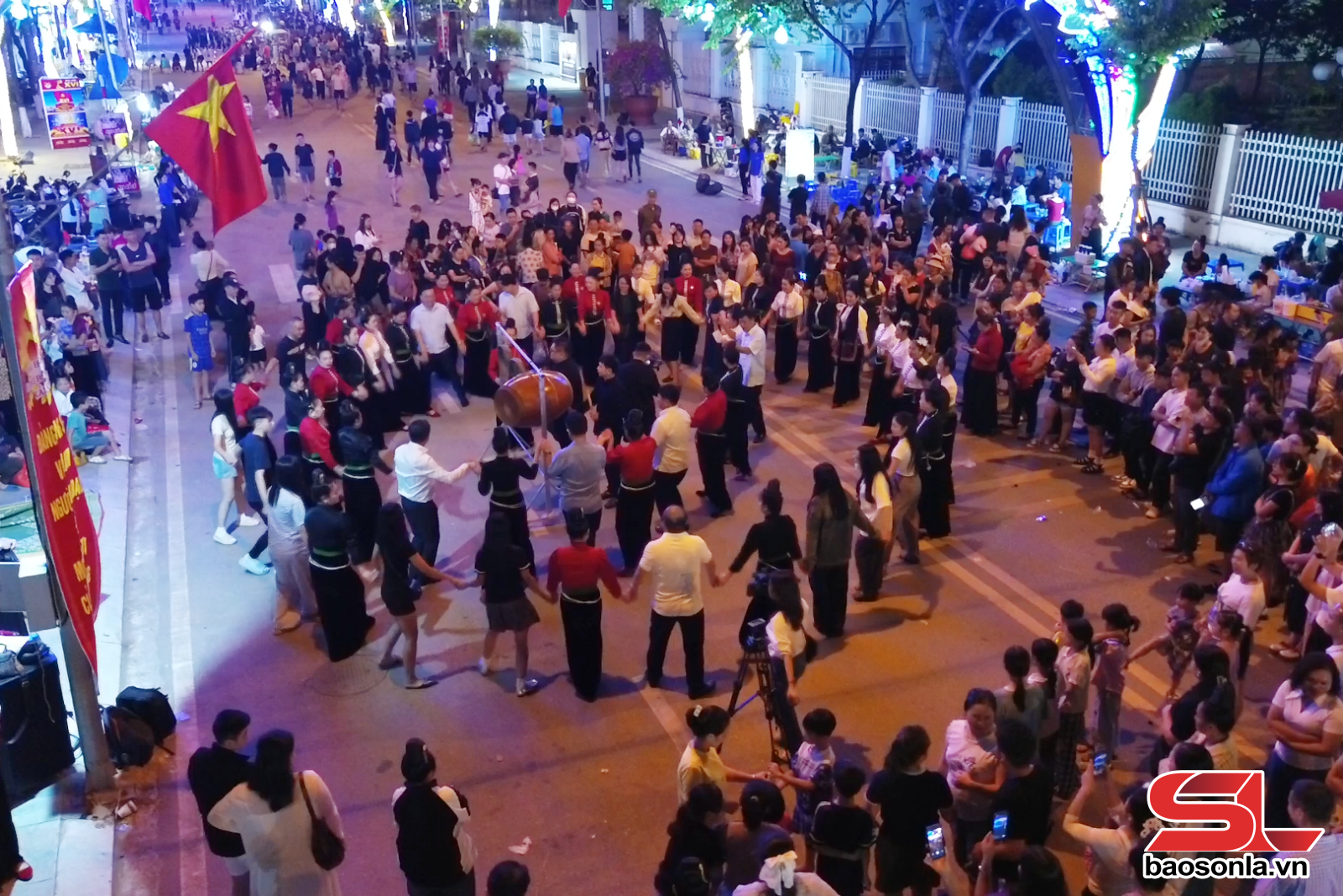 Đông đảo nhân dân, du khách tham quan, trải nghiệm vòng xòe tại phố đi bộ Hoàng Quốc Việt, phường Chiềng Cơi.