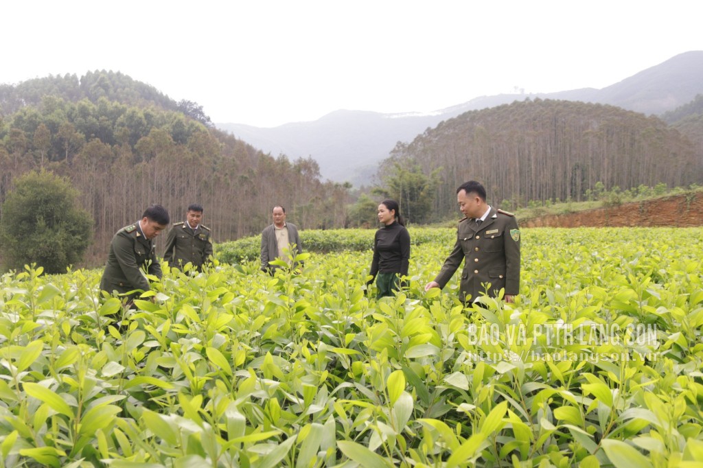 Cán bộ Hạt kiểm lâm Khu vực Hữu Lũng kiểm tra mô hình ươm cây giống tại thôn Voi Xô, xã Tuấn Sơn
