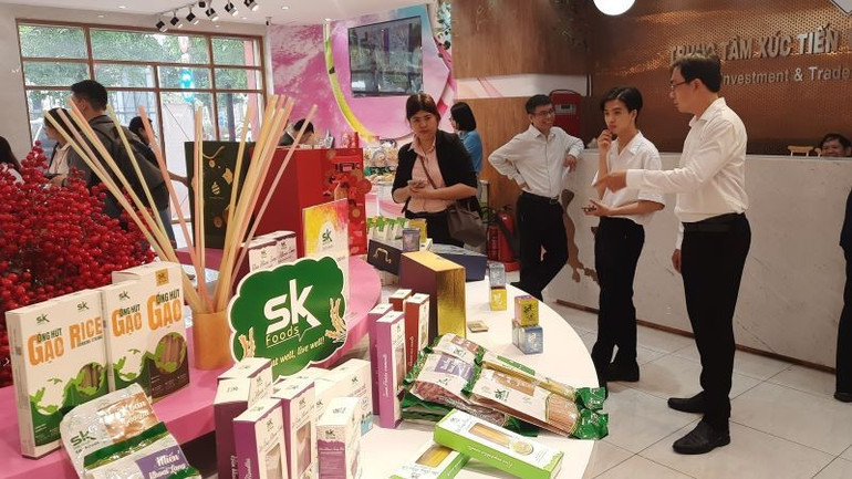 Doanh nghiệp giới thiệu sản phẩm tại Trung tâm Xúc tiến thương mại và Đầu tư Thành phố Hồ Chí Minh.