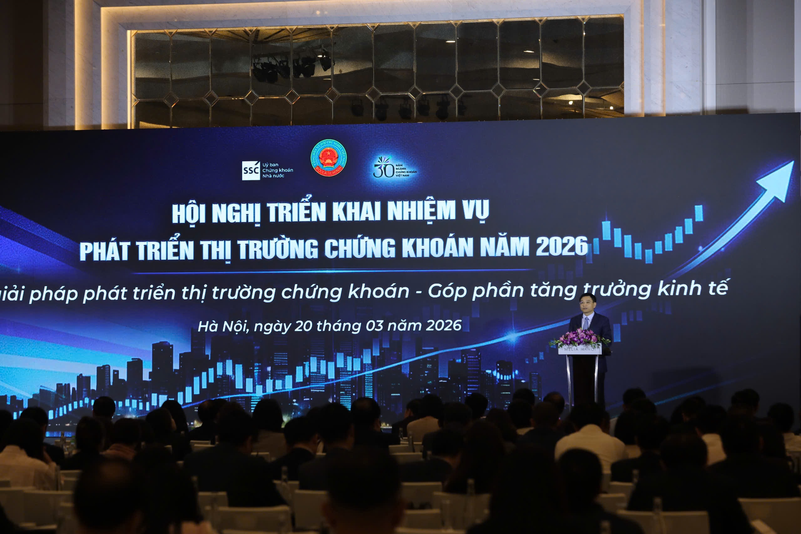 Phát biểu tại hội nghị, Bộ trưởng Bộ Tài chính Nguyễn Văn Thắng cho biết, năm 2025, thị trường chứng khoán Việt Nam đã đạt được nhiều cột mốc quan trọng trong bối cảnh kinh tế thế giới còn nhiều diễn biến phức tạp, khó lường. Thị trường tiếp tục duy trì hoạt động ổn định, phát triển an toàn, minh bạch, đặc biệt là sự mở rộng mạnh mẽ về quy mô và thanh khoản.