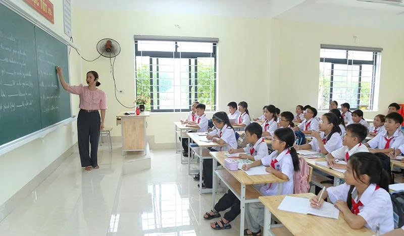 Cô và trò Trường THCS Quảng Đại, phường Nam Sầm Sơn trong giờ học.