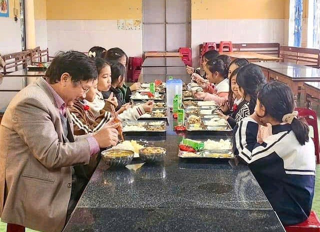 Buổi cơm trưa đầy đủ cho thầy cô và học sinh.