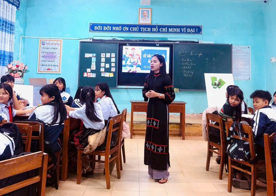 Trong 1 giờ dạy học tại Trường THCS-DTNT A Lưới, TP Huế.