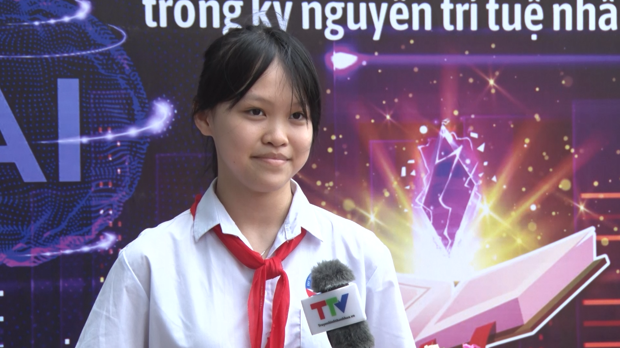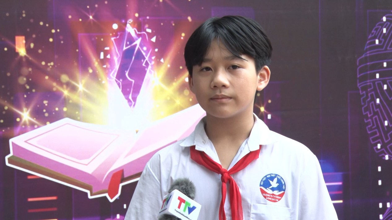 Em Trần Việt Hà Anh, học sinh lớp 7B2, Trường TH, THCS và THPT Đông Bắc Ga chia sẻ về cách tiếp cận sách và tình yêu dành cho sách.