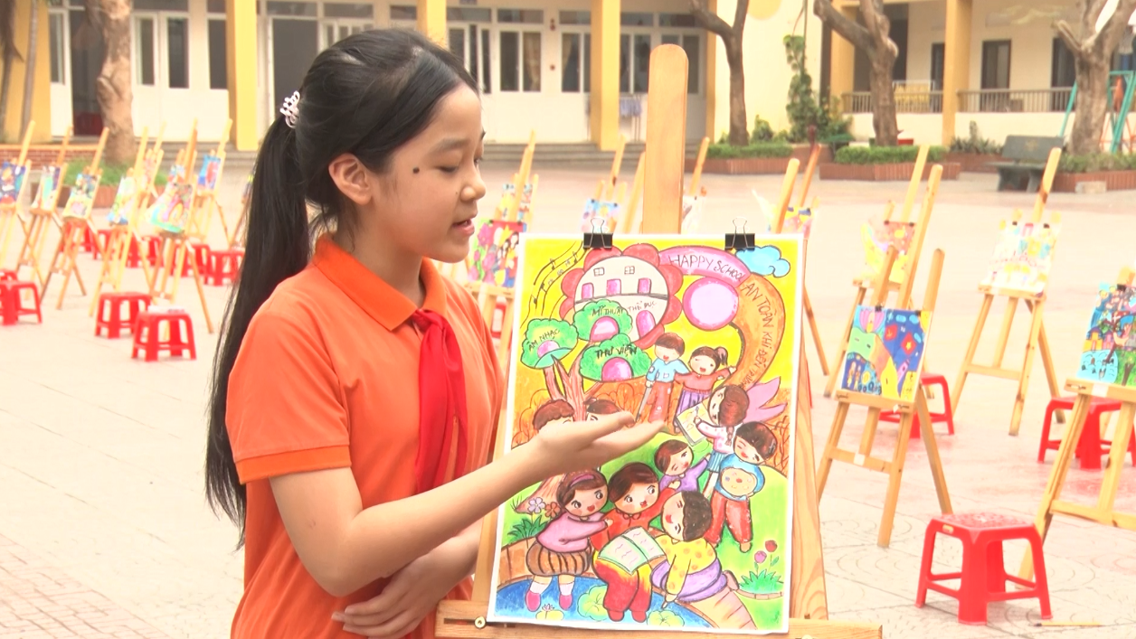 Em Trần Mai Thùy, học sinh lớp 5A2, Trường Tiểu học Điện Biên 1 chia sẻ về cuốn sách mà em đã truyền tải trong bức tranh.