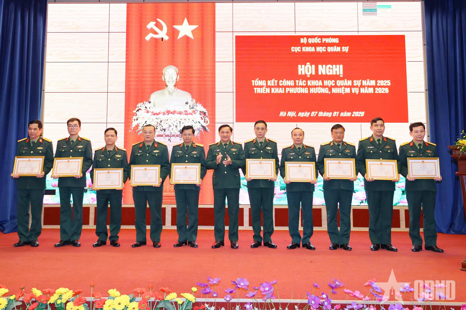 Trao Bằng khen của Bộ trưởng Bộ Quốc phòng tặng các tập thể có thành tích xuất sắc trong công tác khoa học, công nghệ và môi trường năm 2025.