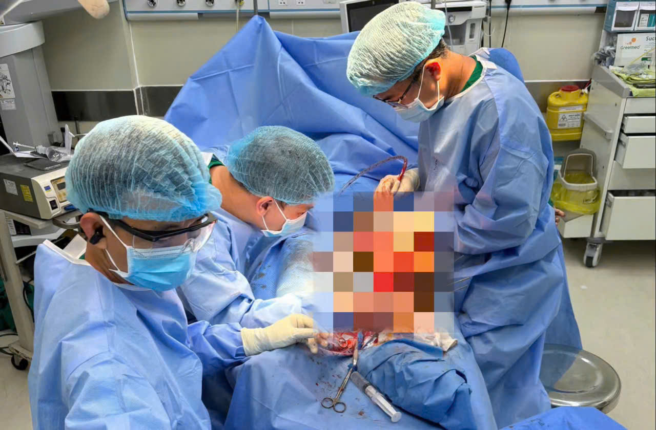 BSCKII Nguyễn Thành Hưng, Khoa Lồng ngực - Mạch máu cho biết, trong quá trình phẫu thuật, bác sĩ ghi nhận động mạch khoeo ở chân trái của bệnh nhân bị đứt hoàn toàn, mất một đoạn dài hơn 2cm, không thể nối trực tiếp. Theo đó, các bác sĩ đã lấy một đoạn tĩnh mạch ở chân lành để làm cầu nối, giúp máu lưu thông trở lại xuống bàn chân bị thiếu máu trong thời gian dài.