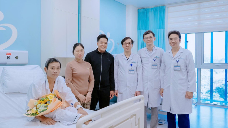 Ê-kíp bác sĩ chúc mừng bệnh nhân phẫu thuật thành công.