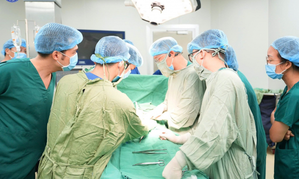 Khi thai đủ 39 tuần, các bác sĩ tiến hành phẫu thuật theo kế hoạch. Ca mổ được thực hiện theo hai giai đoạn: Gây tê mổ lấy thai trước, sau đó gây mê toàn thân để xử trí khối u.