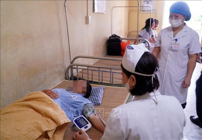 Bác sĩ Đại học Y Thái Bình kiểm tra sức khỏe cho bệnh nhân M.T.T sau ca mổ. Ảnh: Nguyễn Công Hải/TTXVN
