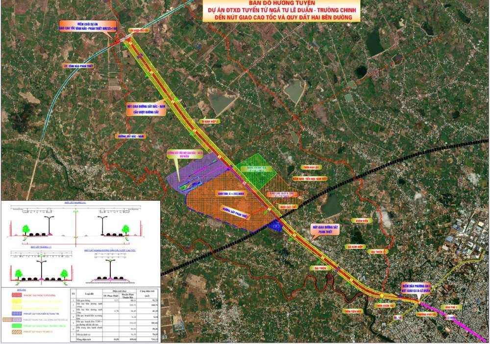 Theo quy hoạch, tuyến đại lộ có chiều dài khoảng 12,5 km, bao gồm 11,2 km tuyến chính và gần 0,85 km các nhánh kết nối với cao tốc. Điểm đầu tại nút giao Lê Duẩn – Trường Chinh (thuộc Quốc lộ 1), điểm cuối kết nối trực tiếp với cao tốc Vĩnh Hảo – Phan Thiết. Giai đoạn đầu, tuyến được đầu tư với quy mô 6 làn xe; về lâu dài sẽ mở rộng lên 12 làn xe với mặt cắt ngang lên tới 79 m, đáp ứng nhu cầu phát triển dài hạn của khu vực.