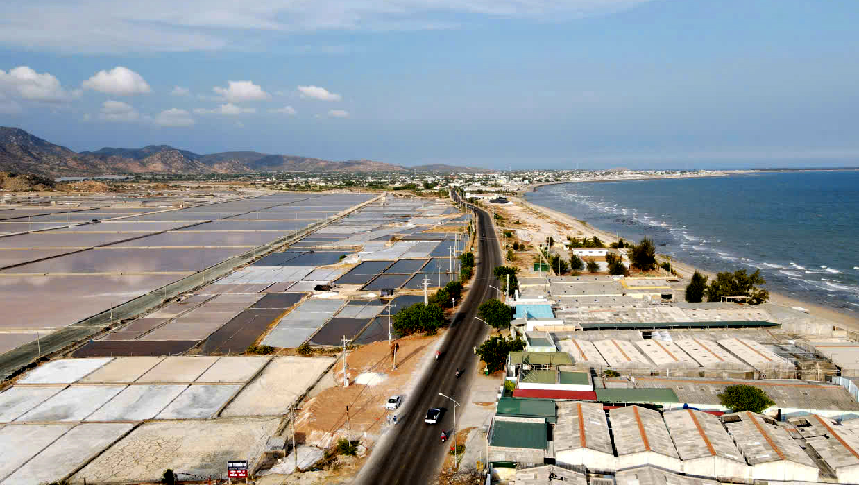 Những cánh đồng muối trắng ven biển Nam Khánh Hòa. Ảnh: H.H