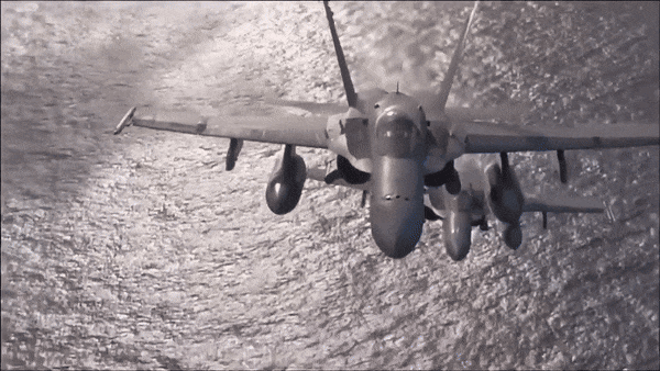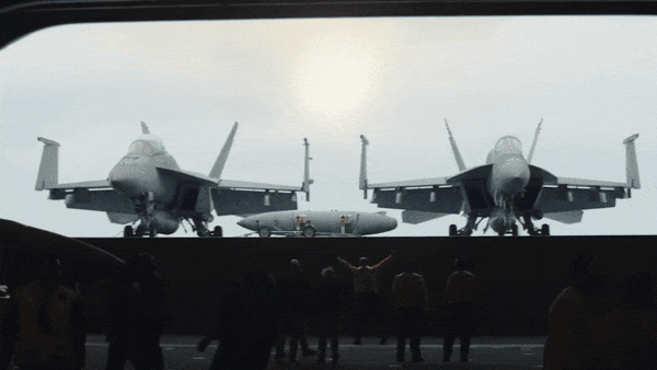 Cùng thời điểm, 2 tiêm kích tác chiến điện tử EA-18G Growler cũng xuất hiện ở phía bắc vịnh. EA-18G Growler được trang bị bộ gây nhiễu ALQ-99, radar AN/APG-79 và các thiết bị trinh sát tín hiệu, có khả năng áp chế radar đối phương hoặc che chắn cho các máy bay tấn công. Máy bay này có tốc độ tối đa khoảng 1.900 km/h và bán kính chiến đấu gần 850 km, đóng vai trò quan trọng nếu xảy ra xung đột cường độ cao.
