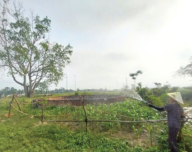Như thường lệ, 17h, bà Trần Thị Ngoan, thôn Quả Cảm (xã Thắng Lợi) lại ra mảnh vườn nhỏ tưới rau. Nước tưới được lấy ở ngay chiếc giếng cạnh vườn. Được biết, đây là một chiếc giếng cổ có cách đây hơn 200 năm. Đường kính thành giếng khoảng 8m, độ sâu 5m. Như chia sẻ của bà Ngoan, nước giếng ngọt, trong, không bao giờ cạn.