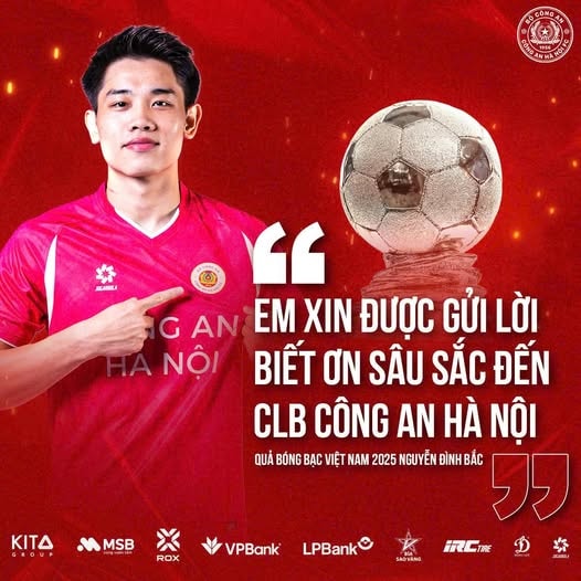 Trên hết, khi kết thúc một năm 2025 thành công, Bắc đã không quên gởi lời cám ơn từ Sông Lam Nghệ An, Quảng Nam… cho đến câu lạc bộ Công an Hà Nội cũng như là ban huấn luyện U22, 23, quốc gia… và VFF - những nơi đã là nền tảng để Bắc bay cao, bay xa.
