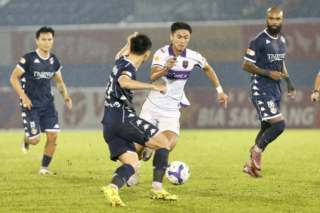 Nguyễn Trần Việt Cường (áo trắng) đang tiến bộ từng ngày ở đấu trường V-League. (Ảnh: VPF)