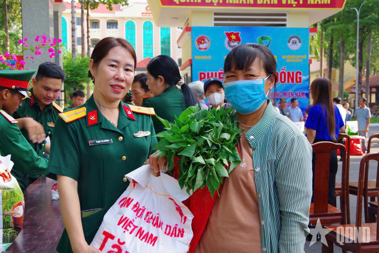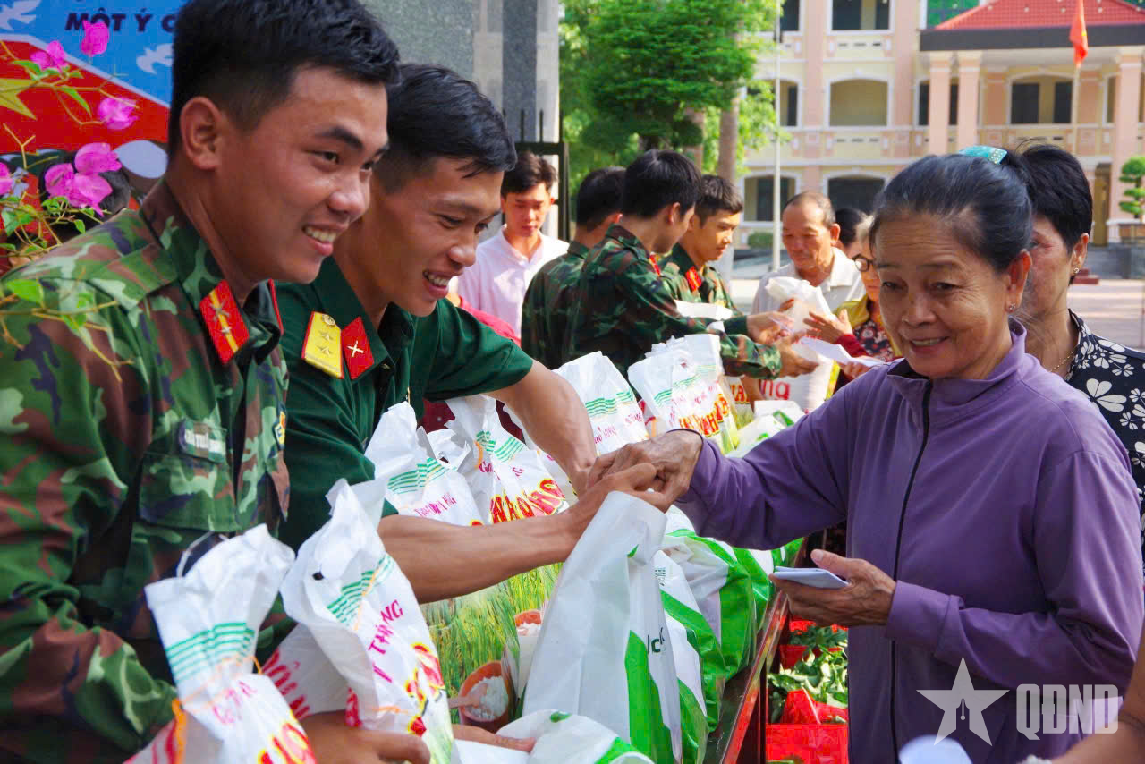Bà con vui vẻ "đi chợ" và nhận những phần quà của Trung đoàn 271, các cơ quan, doanh nghiệp trên địa bàn.