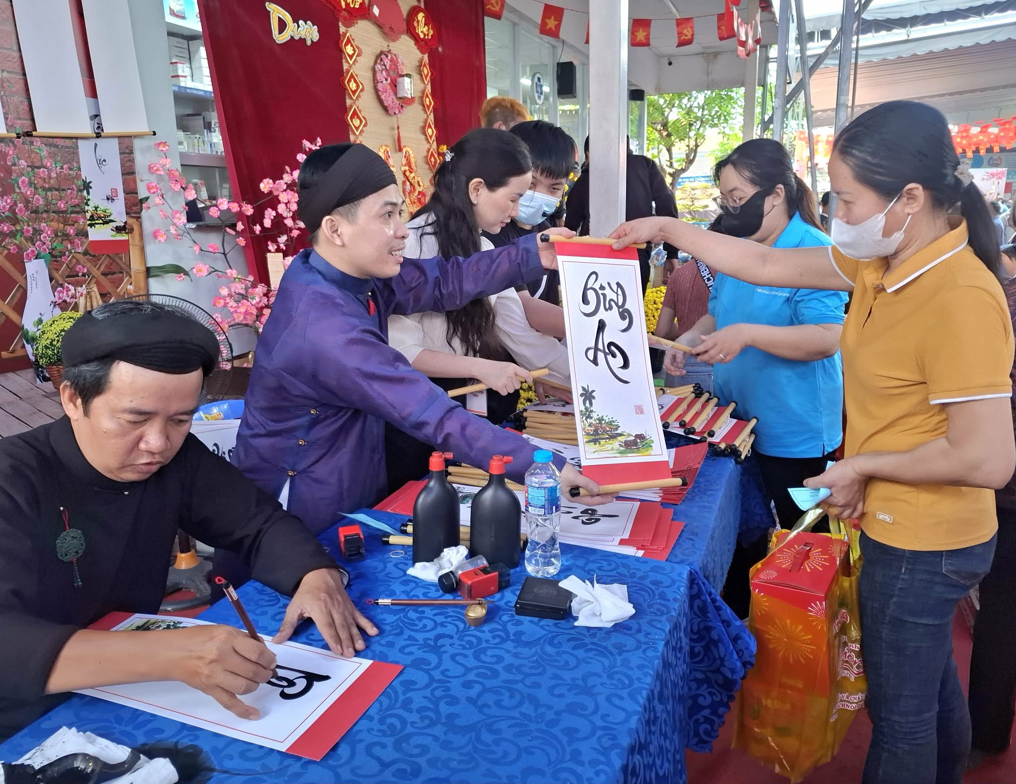 Gian hàng thư pháp phục vụ người bệnh và thân nhân