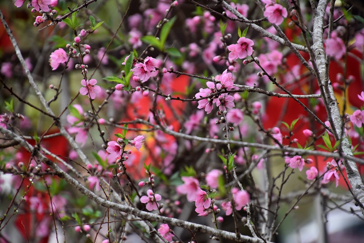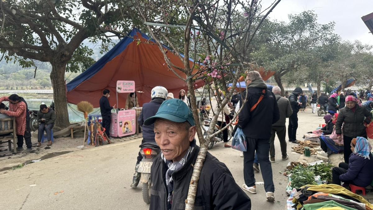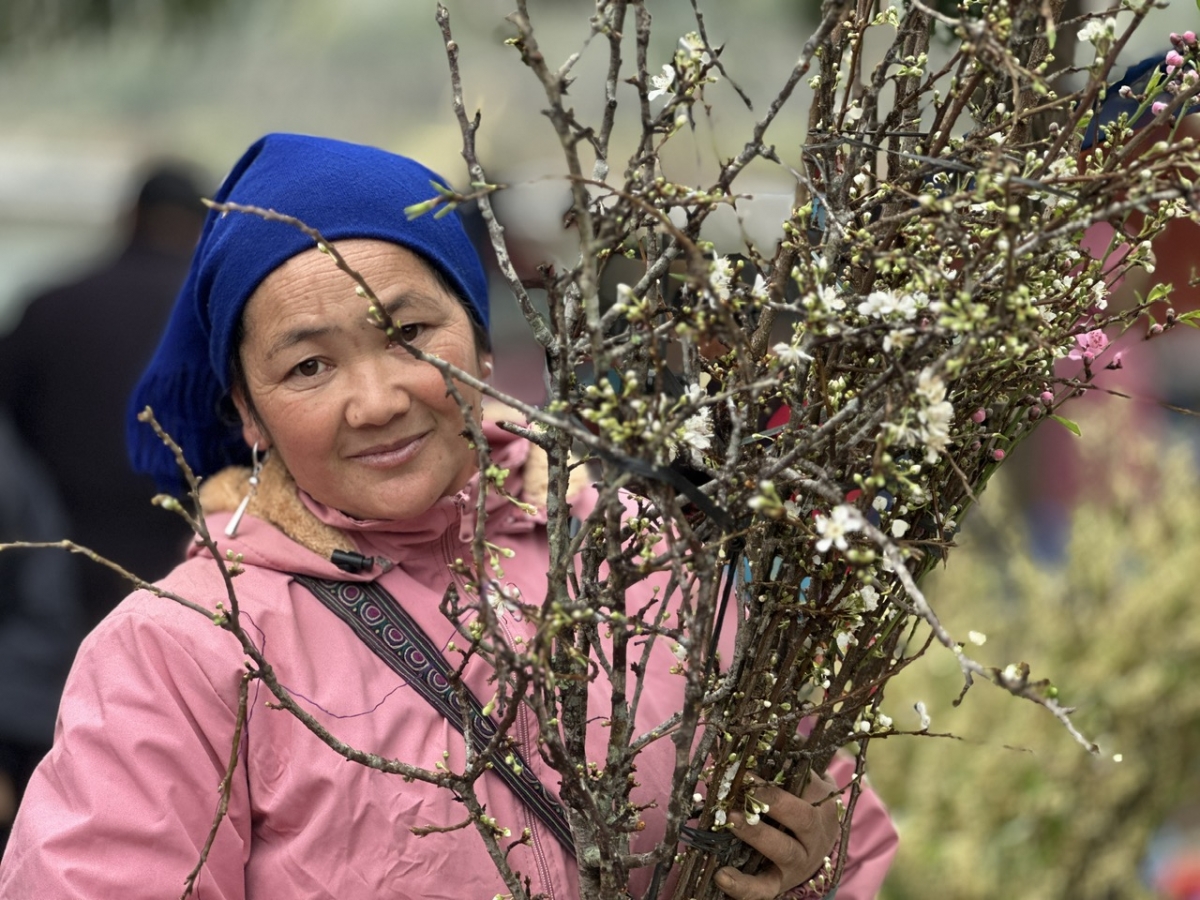 Những cành đào rừng Bắc Hà bà con mang xuống chợ báo hiệu mùa xuân về vùng cao.