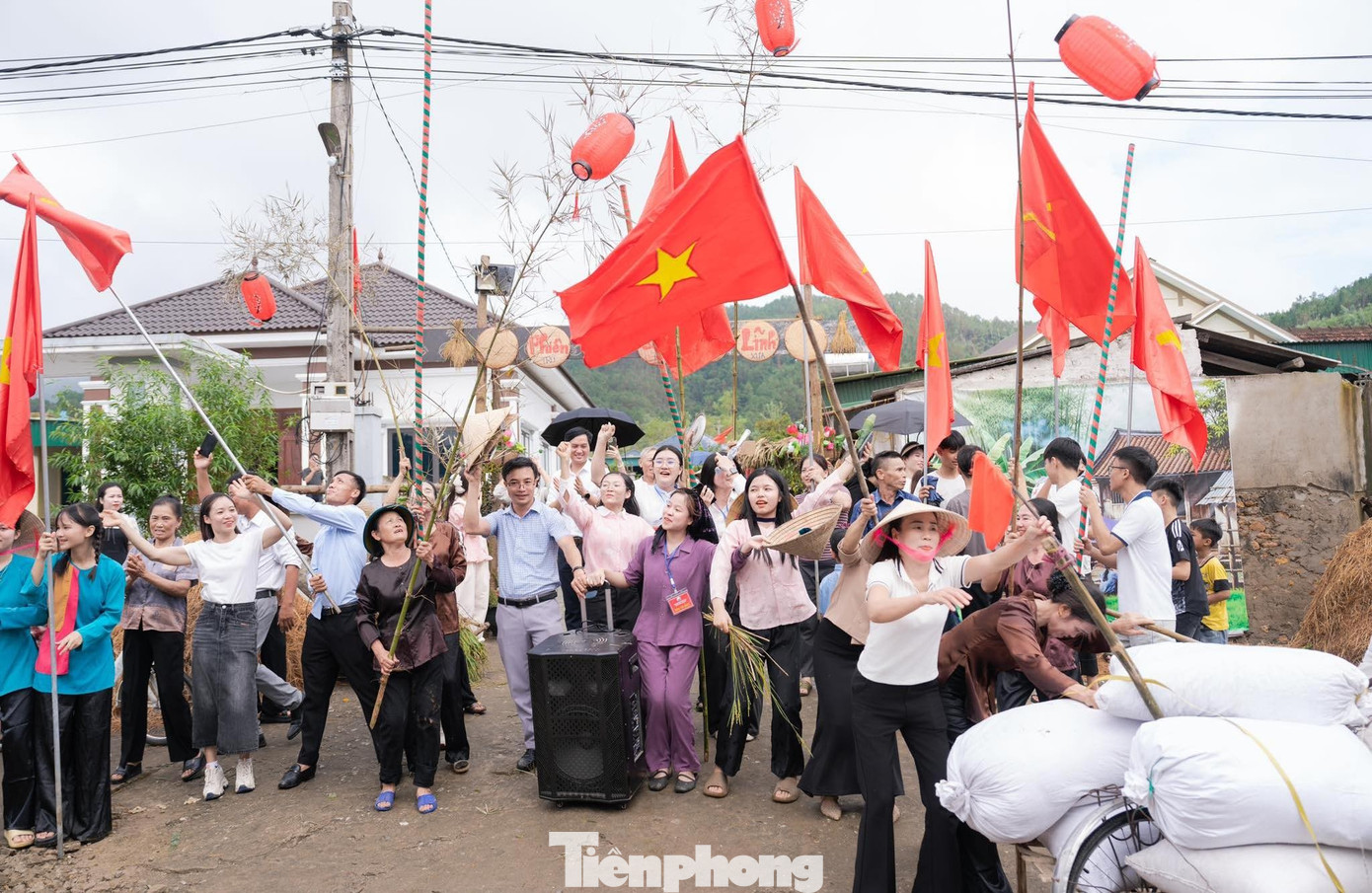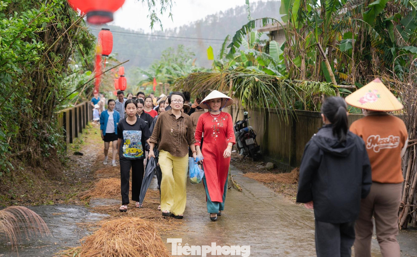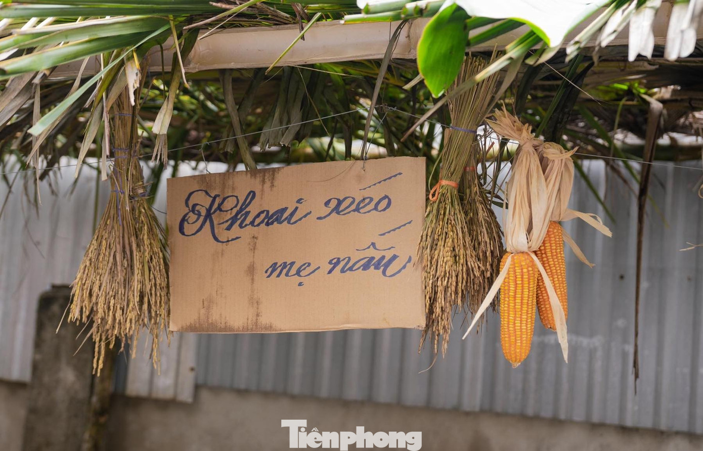 Không gian phiên chợ là những con đường làng được trang trí bài bản với cây rơm, bó lúa, phên tre... mang phong cách làng quê của nhiều thập kỷ trước.