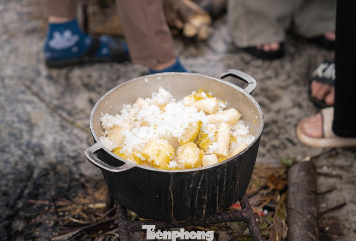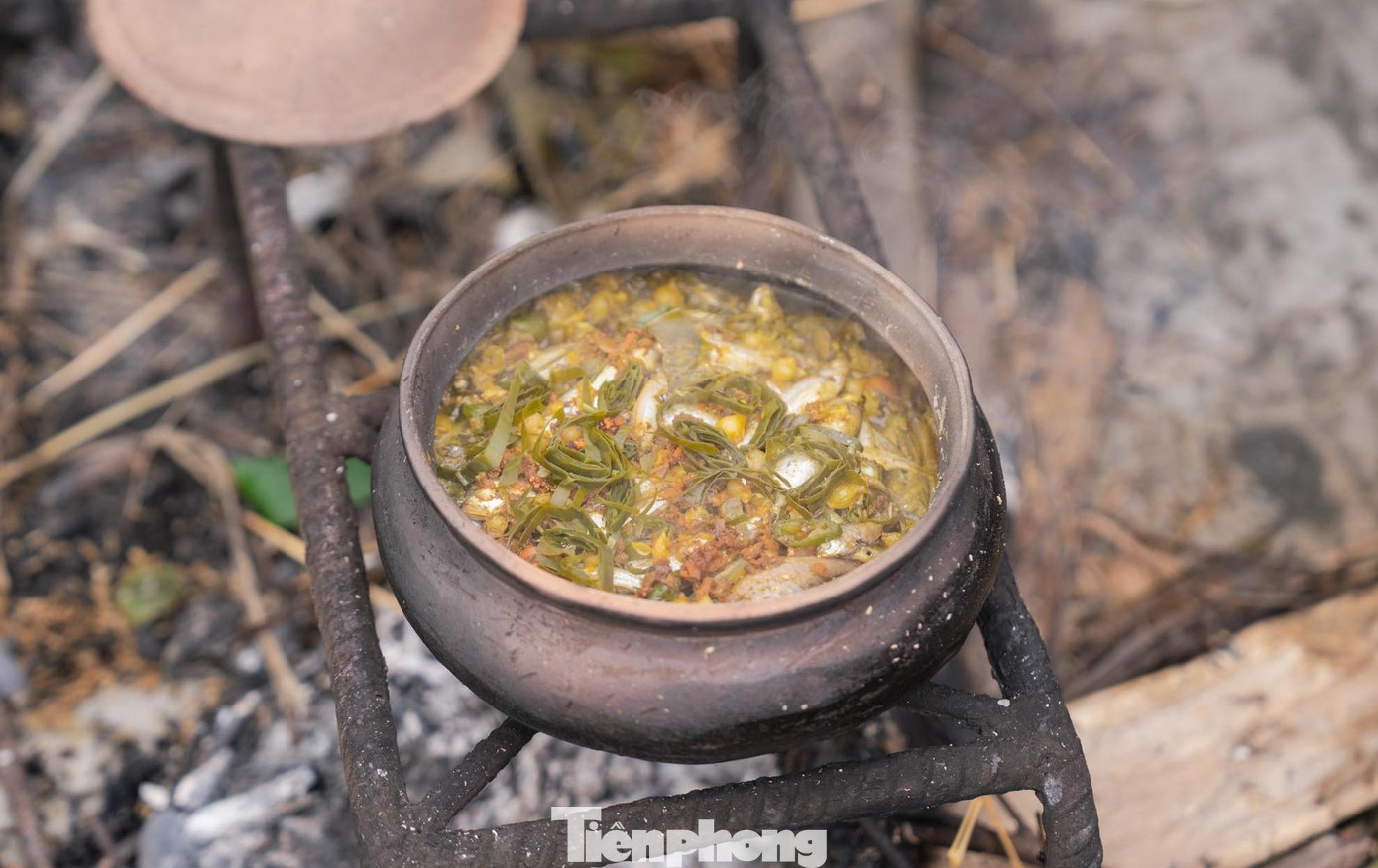 Sắn hấp cơm, chè bù, cá kho nồi đất… những món ăn quê dân dã được tái hiện lại tại phiên chợ.