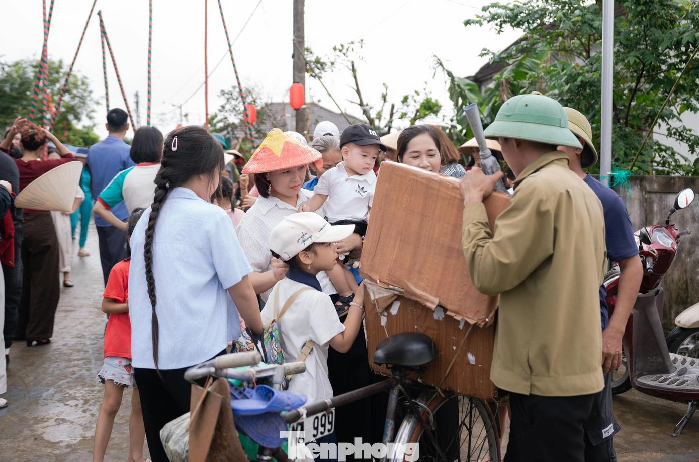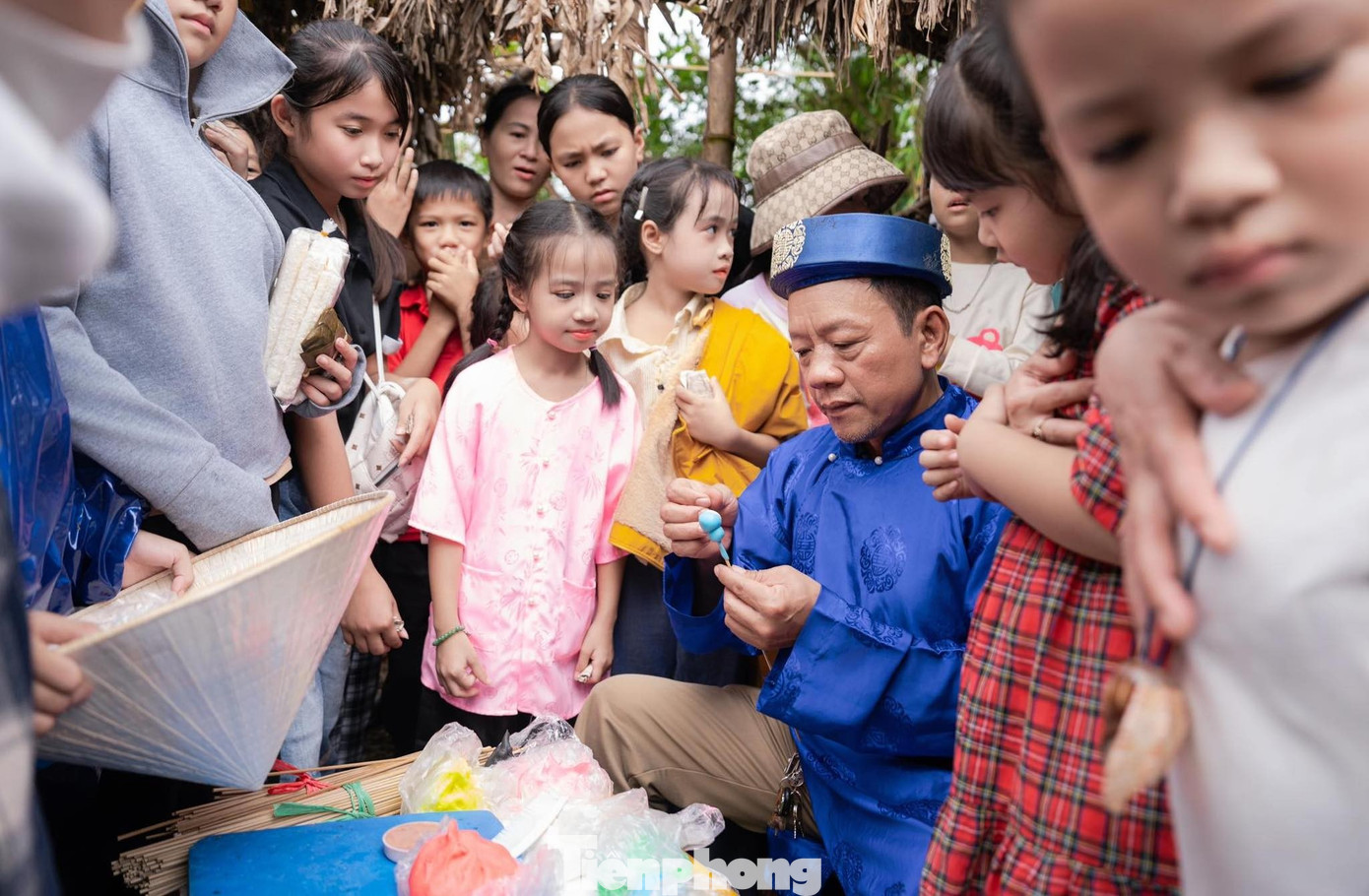Những đứa trẻ háo hức chờ mua tò he tại phiên chợ quê.