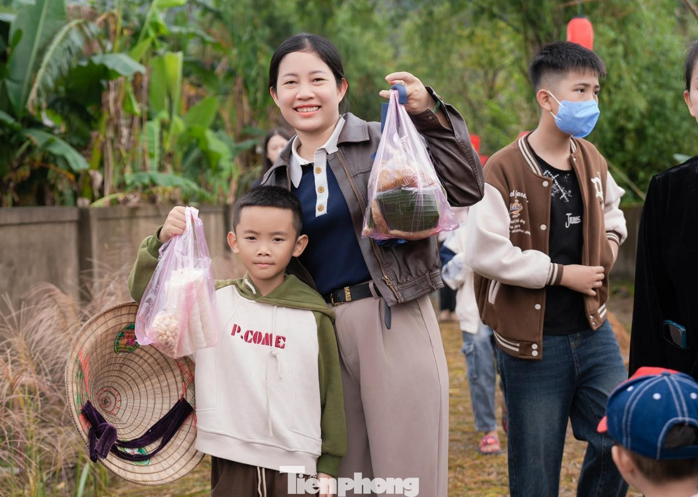 Nụ cười rạng rỡ của người dân khi đến trải nghiệm không gian phiên chợ quê.