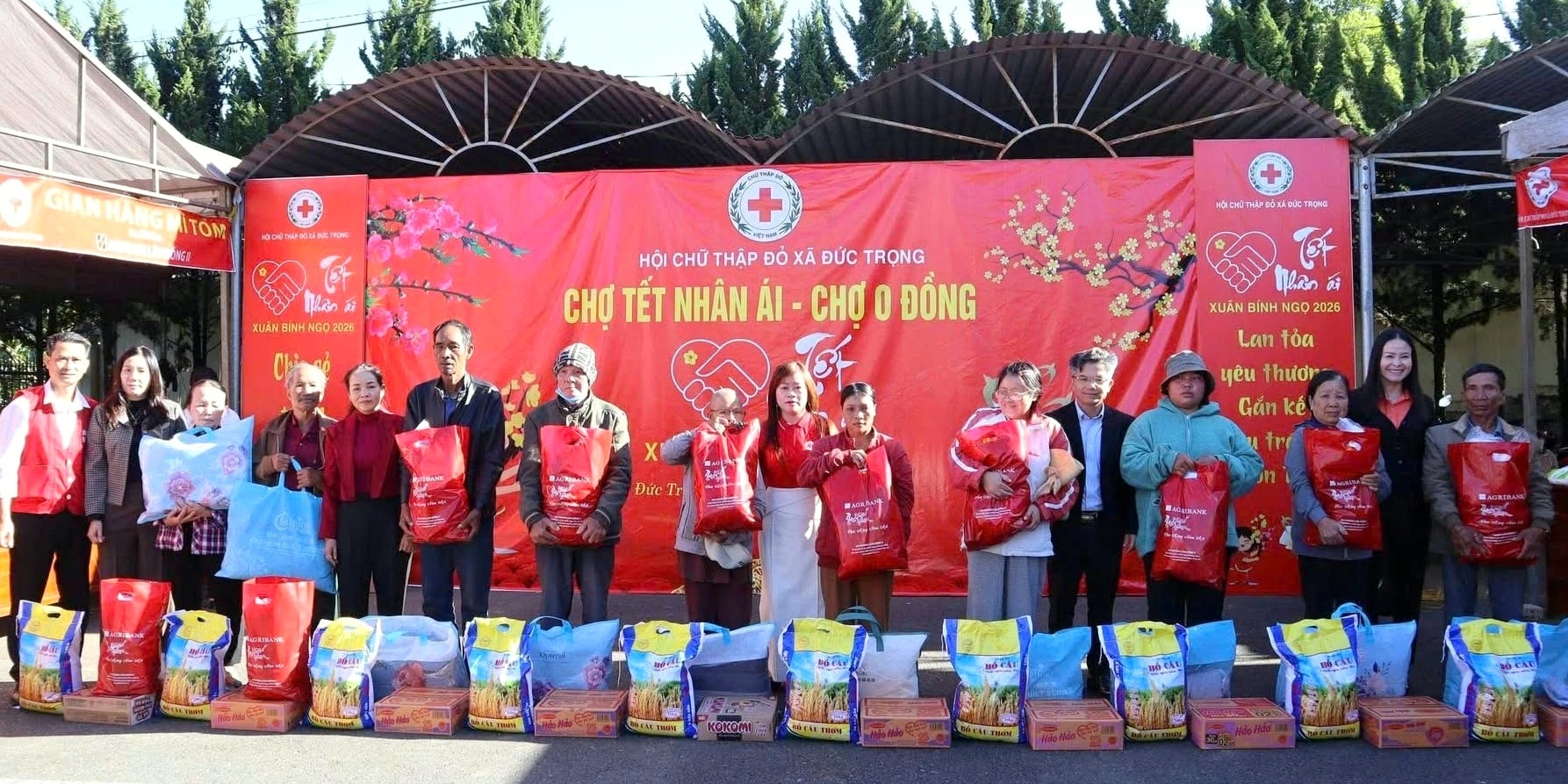 Phiên chợ 0 đồng Tết Bính Ngọ 2026 tại xã Đức Trọng có 13 gian hàng bao gồm các mặt hàng thiết yếu như gạo, mì tôm, hạt nêm, nước mắm, dầu ăn, đường, mứt tết, xà bông, chăn mền… với khoảng 600 phần quà Tết trao tặng cho những hoàn cảnh khó khăn. Tổng trị giá chương trình khoảng 360 triệu đồng.