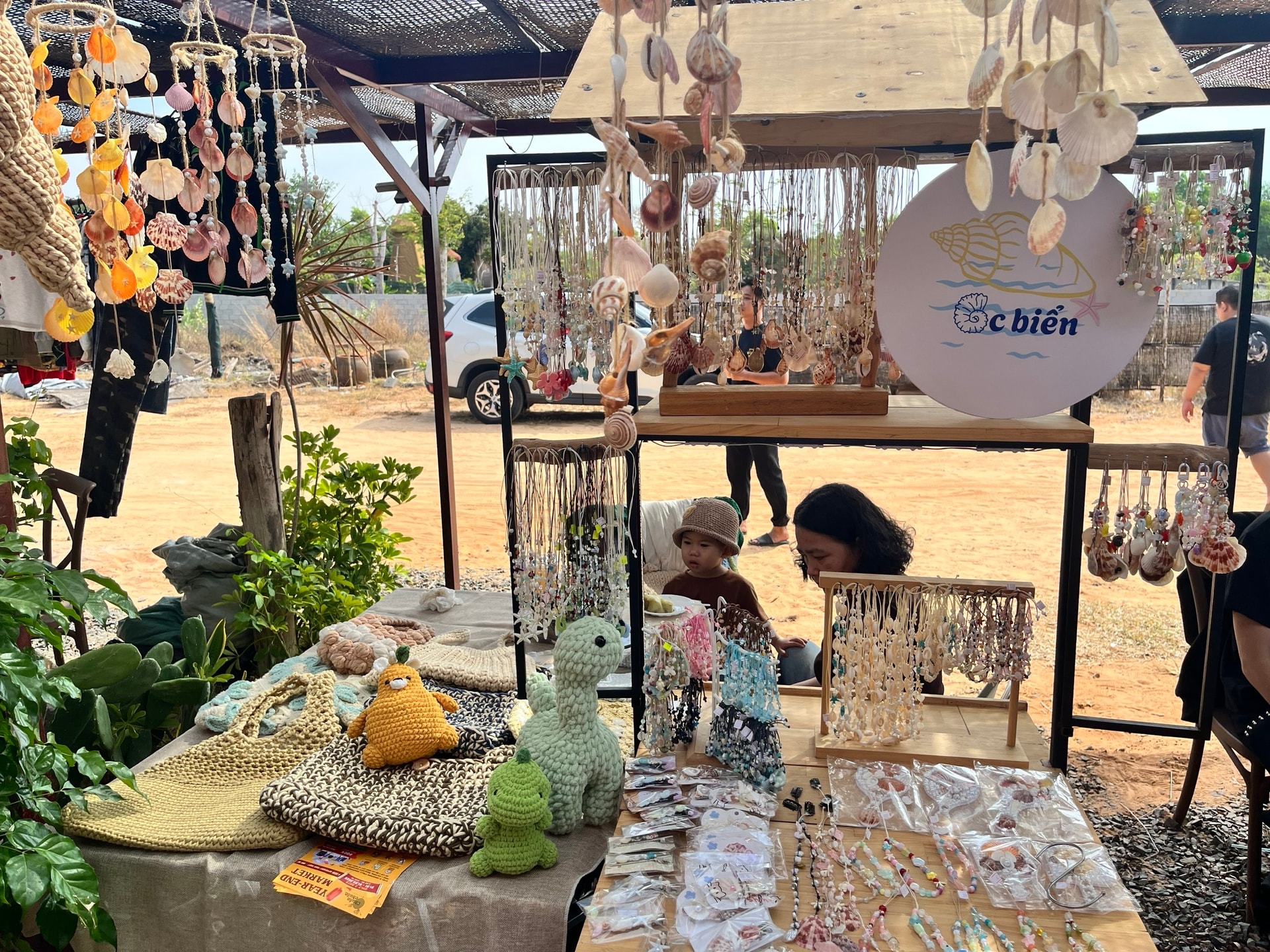 Phiên chợ xanh quy tụ những người đam mê nghệ thuật với rất nhiều mặt hàng thủ công, đồ handmade, những quà tặng xinh xắn từ gỗ, vải, nguyên liệu thiên nhiên, đặc trưng vùng biển…