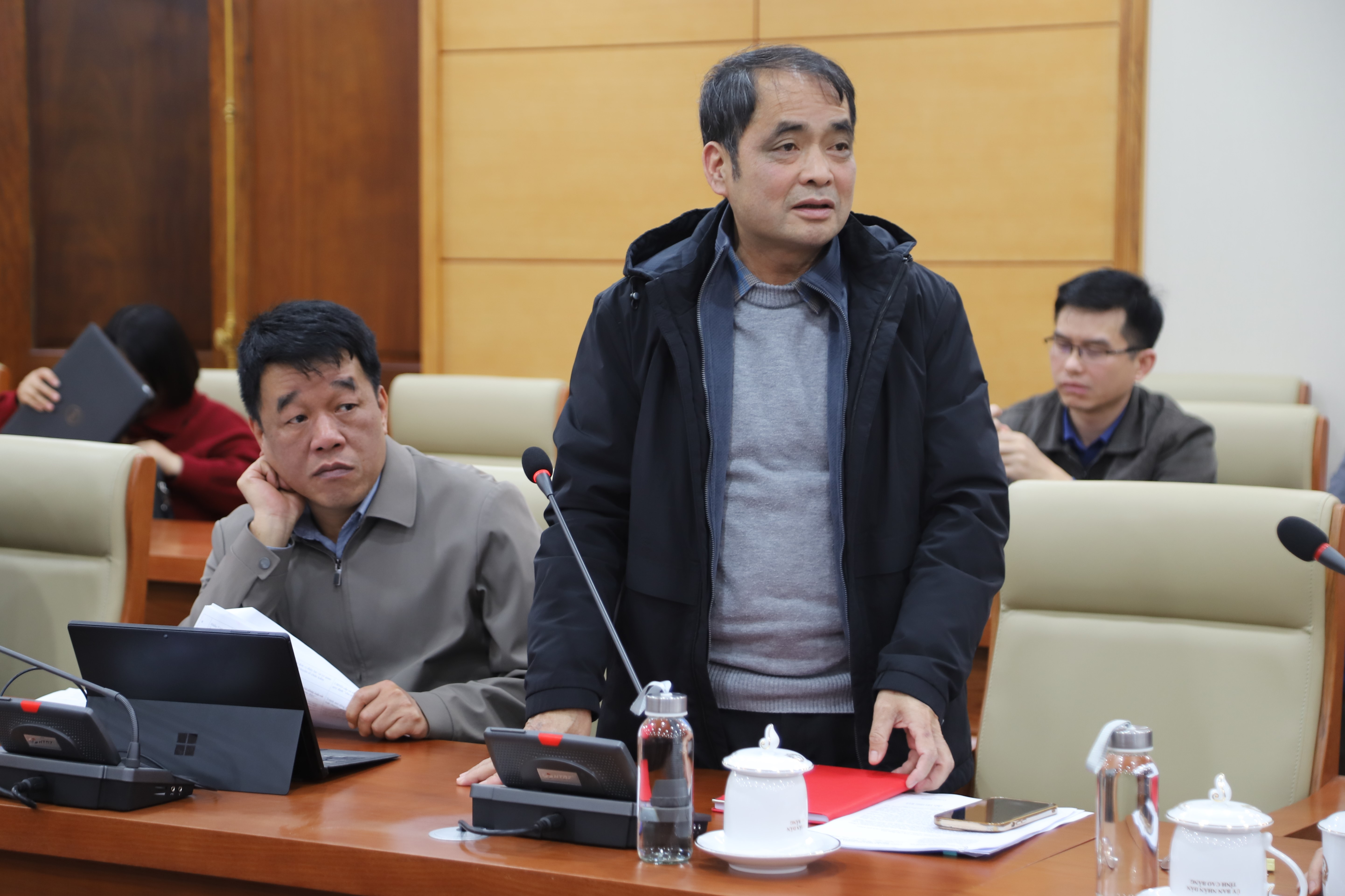 Phát biểu kết luận phiên họp, đồng chí Vũ Đình Quang, Phó Chủ tịch UBND tỉnh ghi nhận và đánh giá cao các ý kiến đóng góp của các đại biểu đã thảo luận tại phiên họp, nhất trí thông qua các văn bản cá biệt trình tại phiên họp. Phó Chủ tich UBND tỉnh đề nghị các cơ quan chủ trì rà soát lại một số nội dung, bổ sung căn cứ pháp lý, điều chỉnh tiêu đề của Nghị quyết phân bổ bổ sung dự toán chi thường xuyên ngân sách nhà nước năm 2026 thực hiện Chương trình mục tiêu quốc gia phát triển kinh tế - xã hội vùng đồng bào dân tộc thiểu số và miền núi giai đoạn 2021 - 2030; bổ sung thêm một số thông tin cơ bản, điều chỉnh các nội dung cho phù hợp để làm cơ sở cho việc xây dựng dự thảo Nghị quyết về chủ trương chuyển mục đích sử dụng rừng sang mục đích khác.