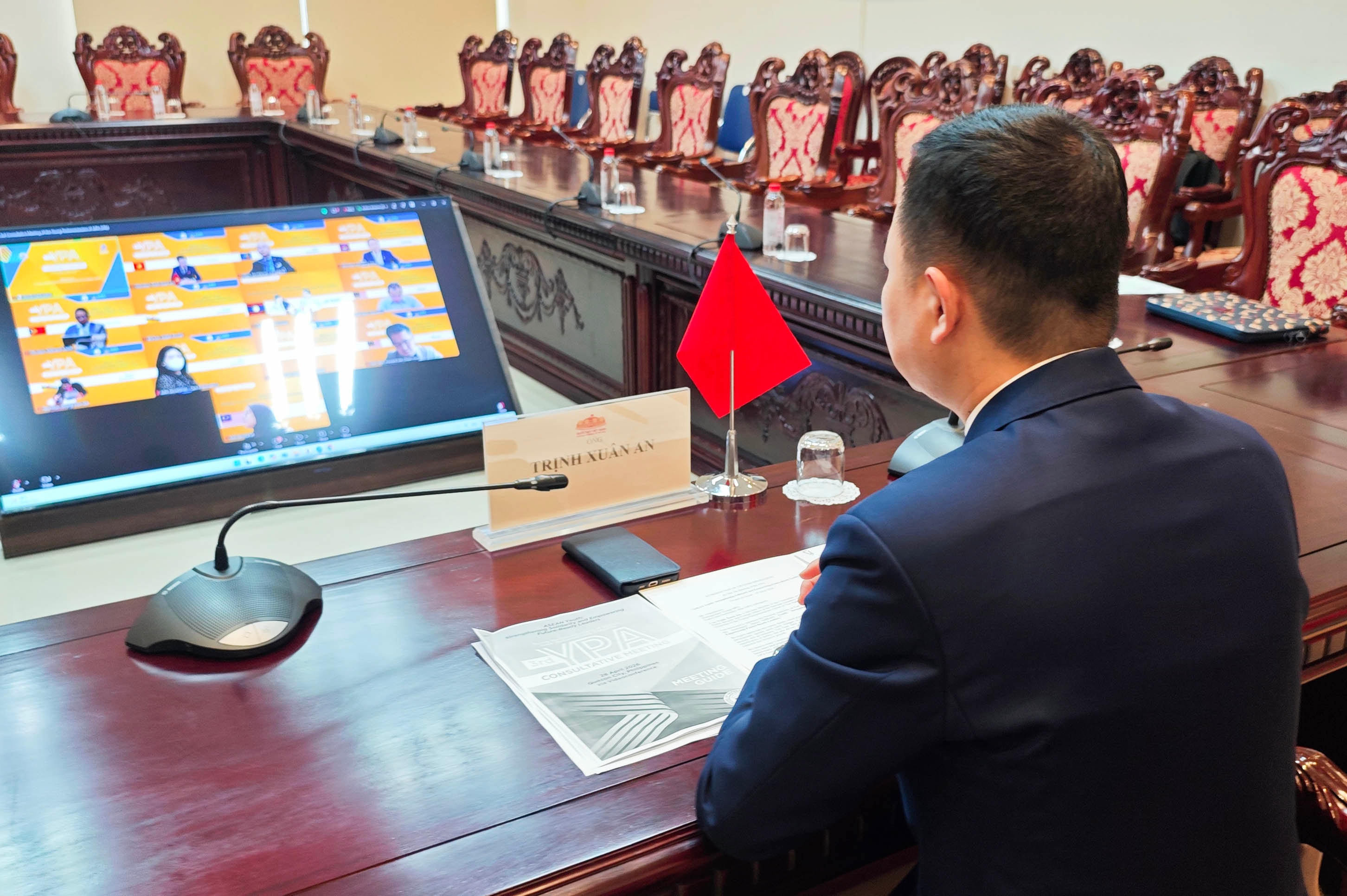 ĐBQH hoạt động chuyên trách tại Ủy ban Quốc phòng, An ninh và Đối ngoại Trịnh Xuân An dự phiên họp trực tuyến lần 3 Hội nghị Nghị sĩ trẻ AIPA. Ảnh: Hồ Long