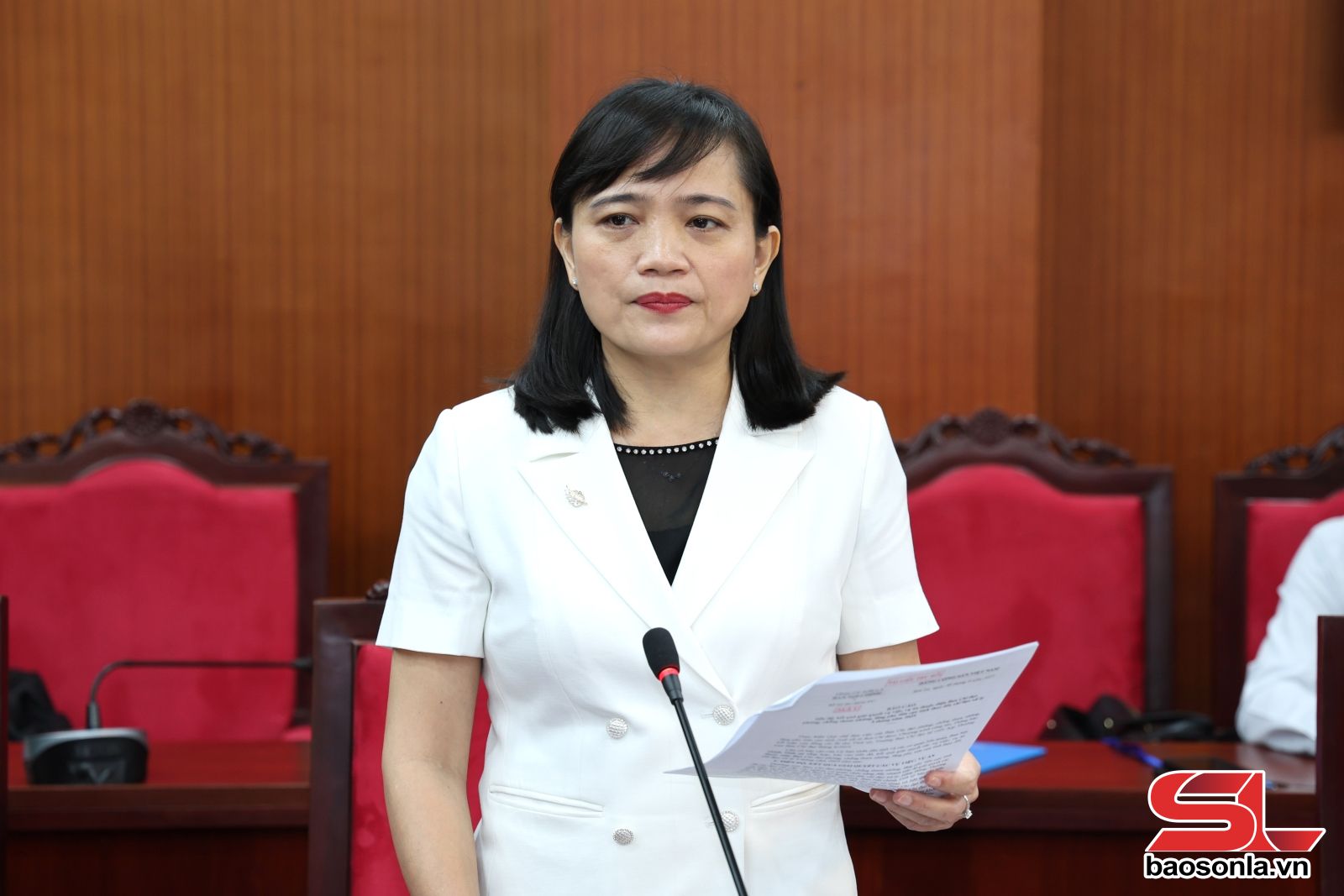 Đồng chí Lường Thị Vân Anh, Ủy viên Ban Thường vụ Tỉnh ủy, Chủ nhiệm Ủy ban Kiểm tra Tỉnh ủy, phát biểu tại phiên họp.