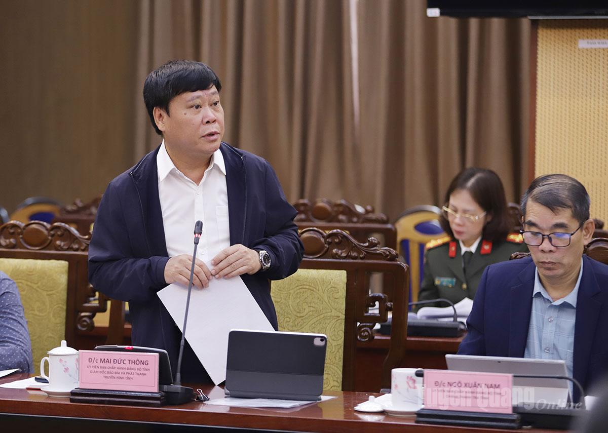 Giám đốc Báo và phát thanh, truyền hình Tuyên Quang Mai Đức Thông, Tổ trưởng Tổ công tác số 2 Ủy ban bầu cử tỉnh phát biểu thảo luận.