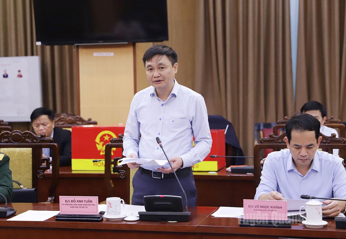 Giám đốc Sở Nội vụ Đỗ Anh Tuấn, Thư ký Ủy ban bầu cử tỉnh tiếp thu các ý kiến thảo luận.