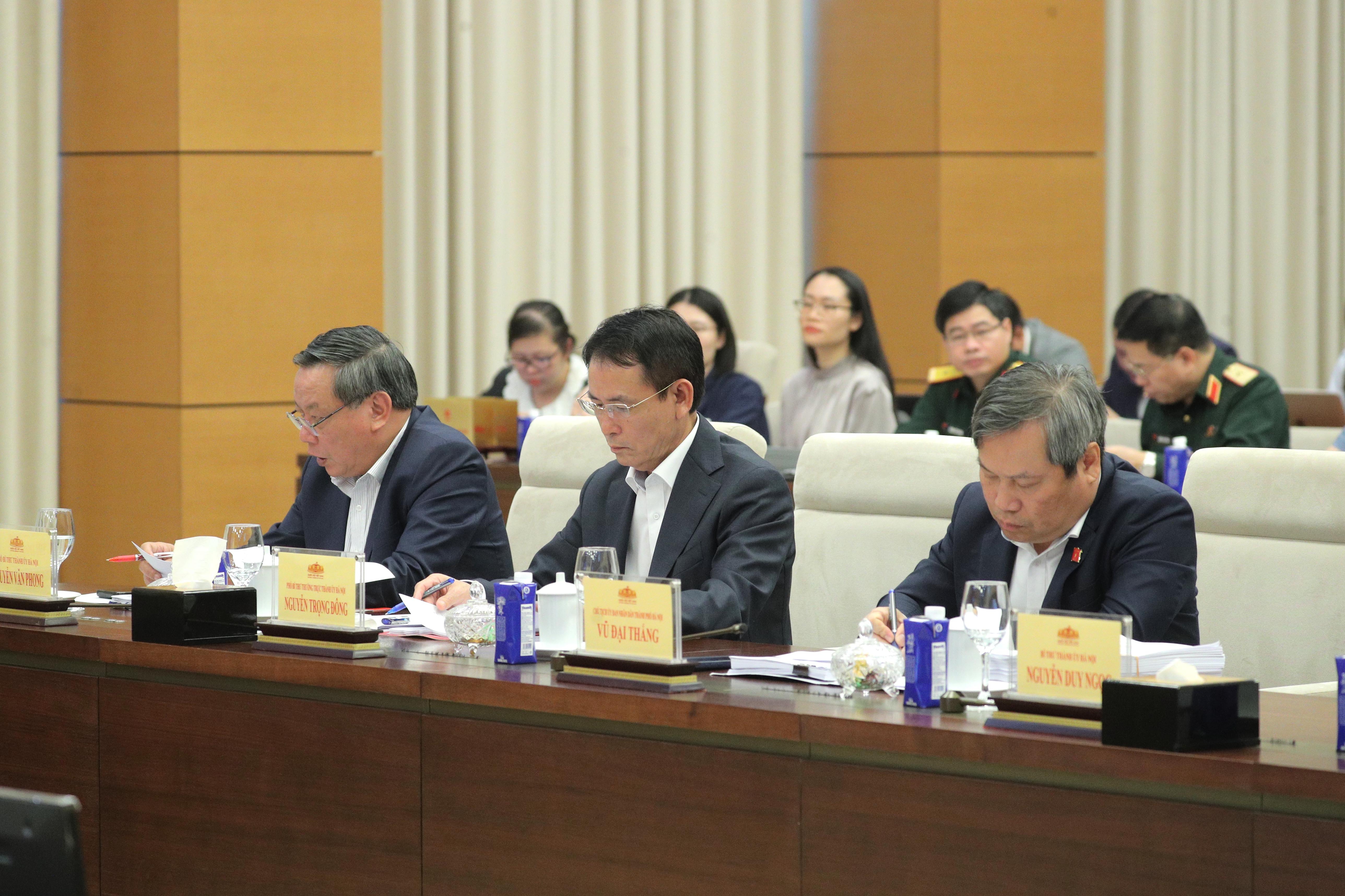 Phó Chủ tịch Quốc hội Vũ Hồng Thanh; Tổng Thư ký Quốc hội, Chủ nhiệm Văn phòng Quốc hội Lê Quang Mạnh; Chủ nhiệm Ủy ban Dân nguyện và Giám sát Dương Thanh Bình tham dự phiên họp