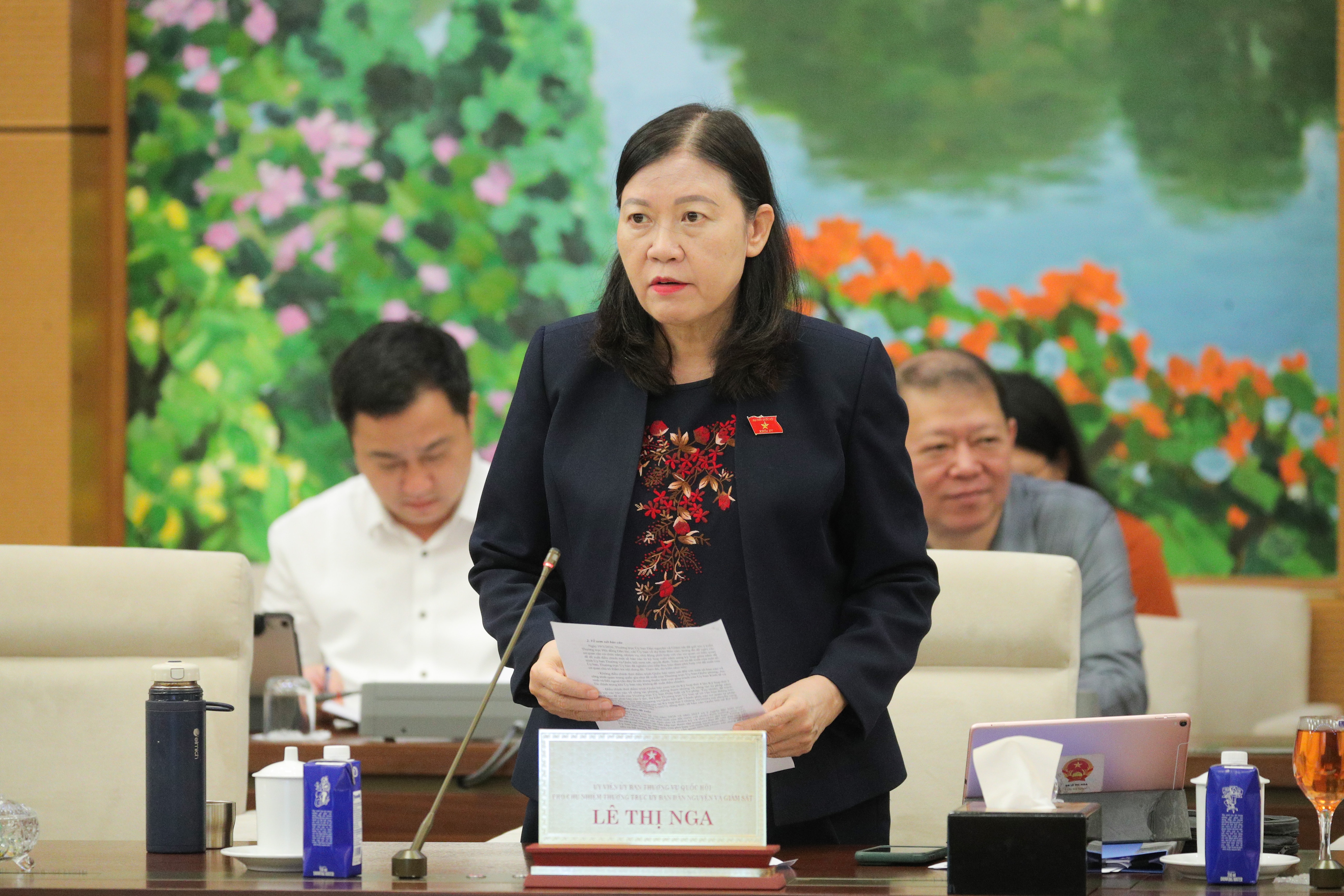 Phó Chủ nhiệm Thường trực Ủy ban Dân nguyện và Giám sát Lê Thị Nga báo cáo tại phiên họp
