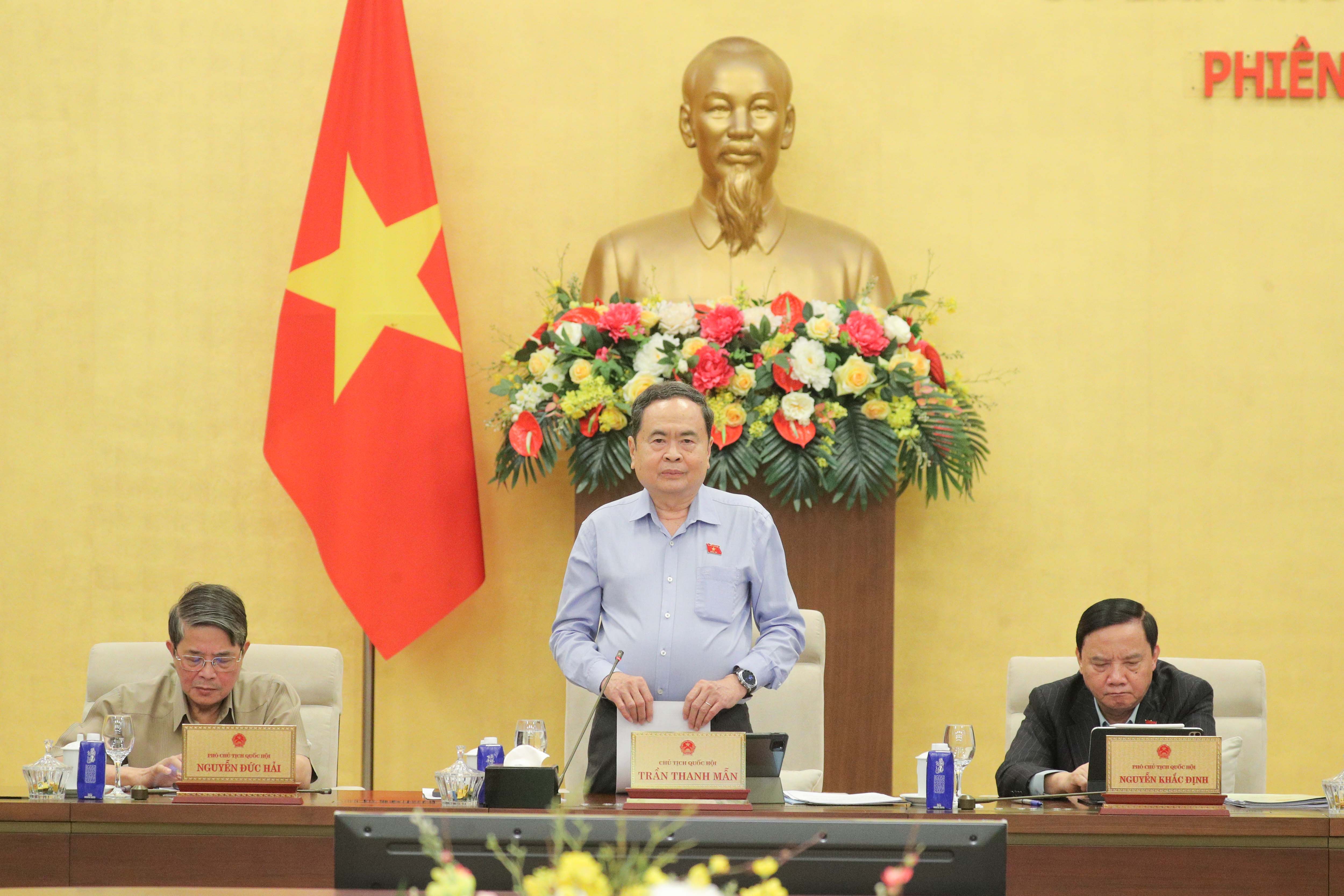 Phát biểu kết luận, Chủ tịch Quốc hội Trần Thanh Mẫn nhấn mạnh, các nội dung trình Quốc hội thảo luận tại đợt 1 cần được rà soát kỹ, lựa chọn những nội dung cần thiết. Tổng Thư ký Quốc hội, Chủ nhiệm Văn phòng Quốc hội phối hợp với Văn phòng Chính phủ rà soát, sắp xếp chương trình phù hợp; có thể chuyển một số nội dung dự kiến thảo luận tại đợt 2 sang đợt 1 để có thêm thời gian tiếp thu, chỉnh lý, hoàn thiện.